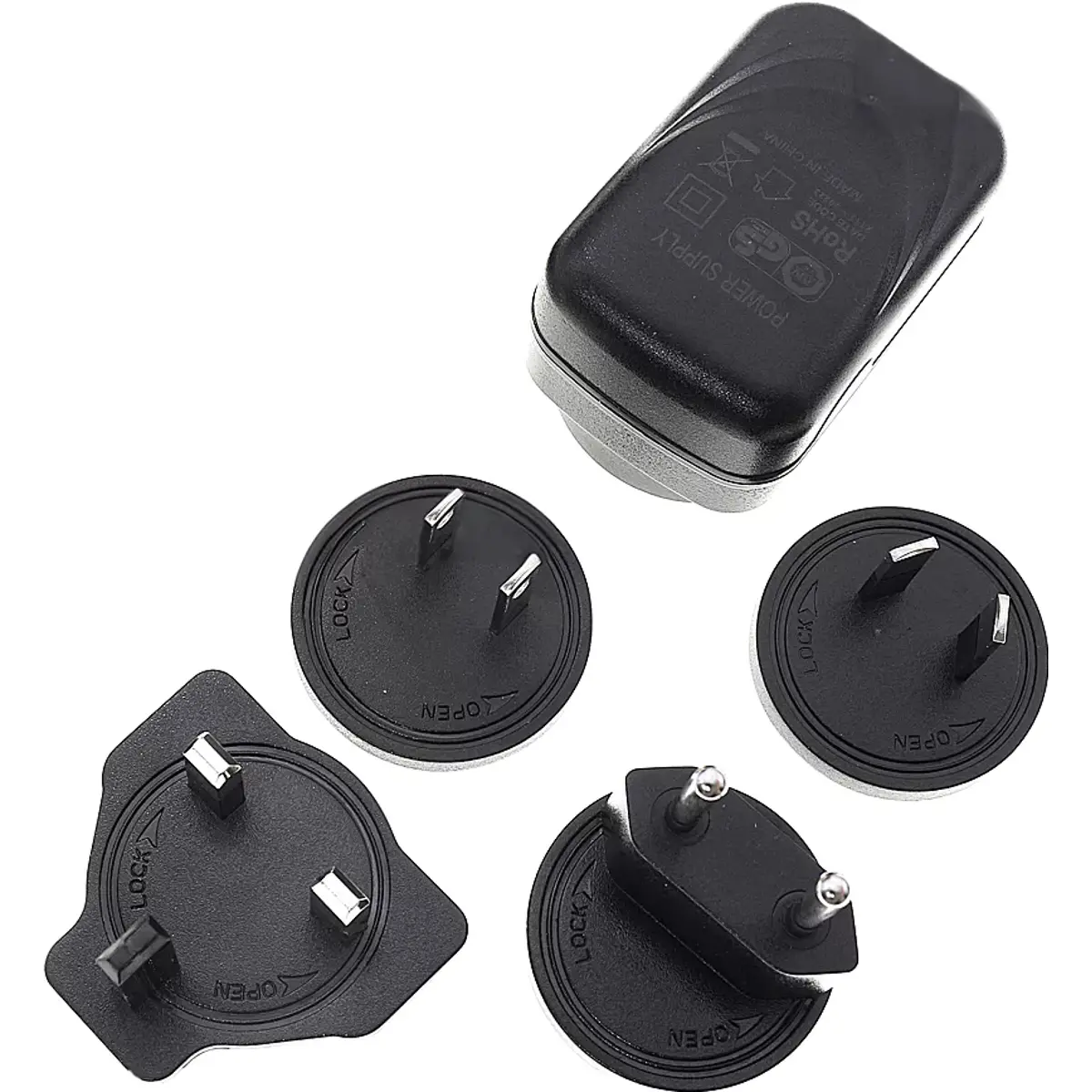 Fonte de alimentação USB 5V 3A compatível com Raspberry Pi 4B. É fornecida com quatro fichas substituíveis para utilização nas regiões dos EUA, Reino Unido, Europa e Austrália.