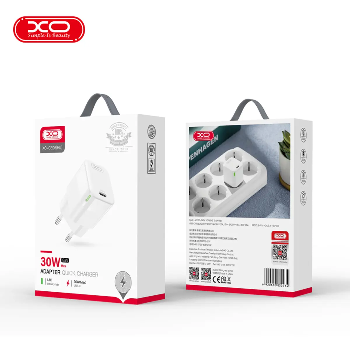 O XO CE06 é um carregador de parede avançado, com uma única tomada PD USB-C de 30 W. Essa potência é ideal para carregar rapidamente até os dispositivos móveis mais exigentes. Seu design clássico se integra facilmente a diferentes estilos de interiores, enquanto a qualidade do acabamento reflete sua solidez e durabilidade.