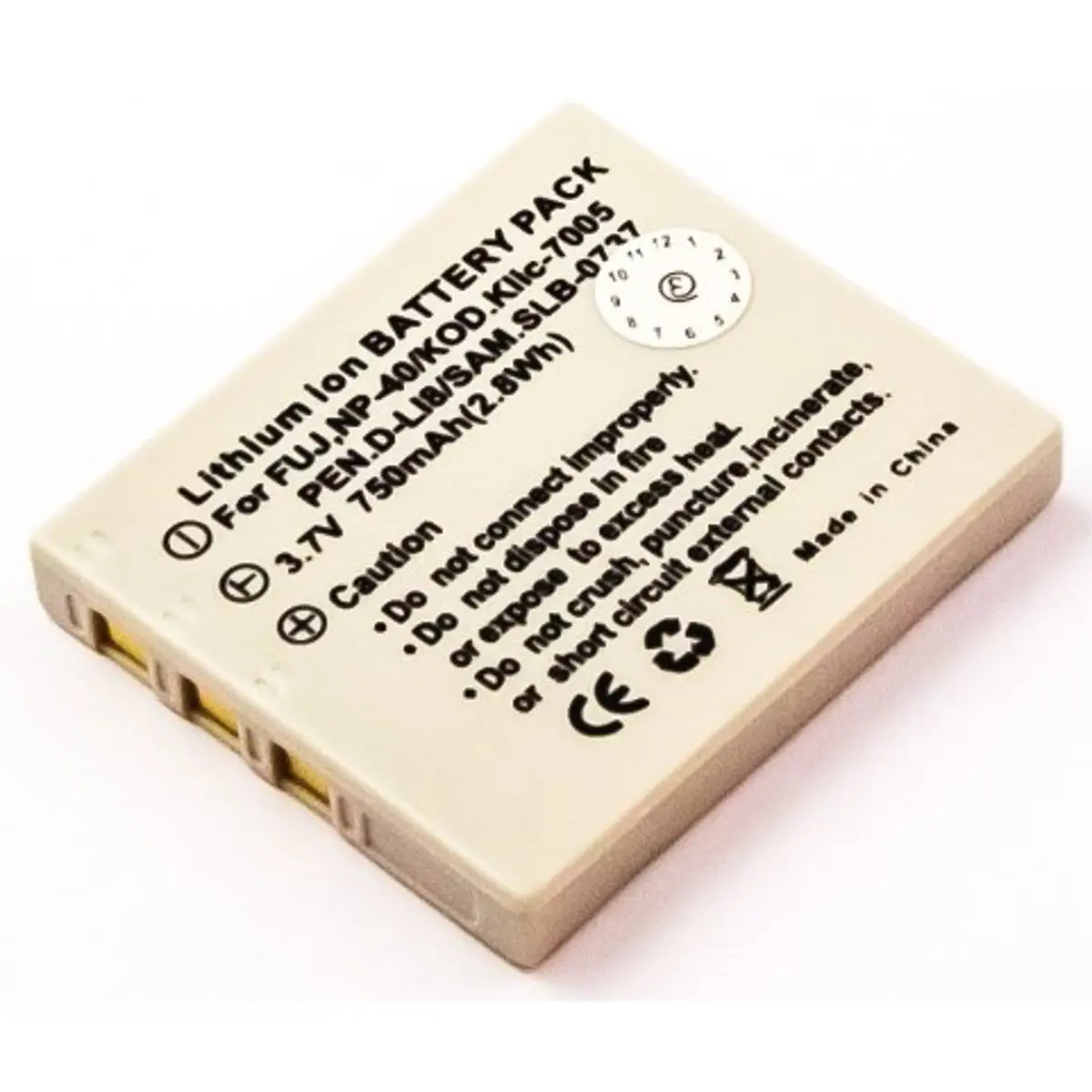 Bateria para câmara compatível com Benq DLI-102 / Fujifilm NP-40 / Pentax D-LI8 / Kodak KLIC-7005 / Sanyo UF553436 / Samsung SLB-0737 / Ricoh - 3.7V 750mAh 2.8Wh Li-Ion
