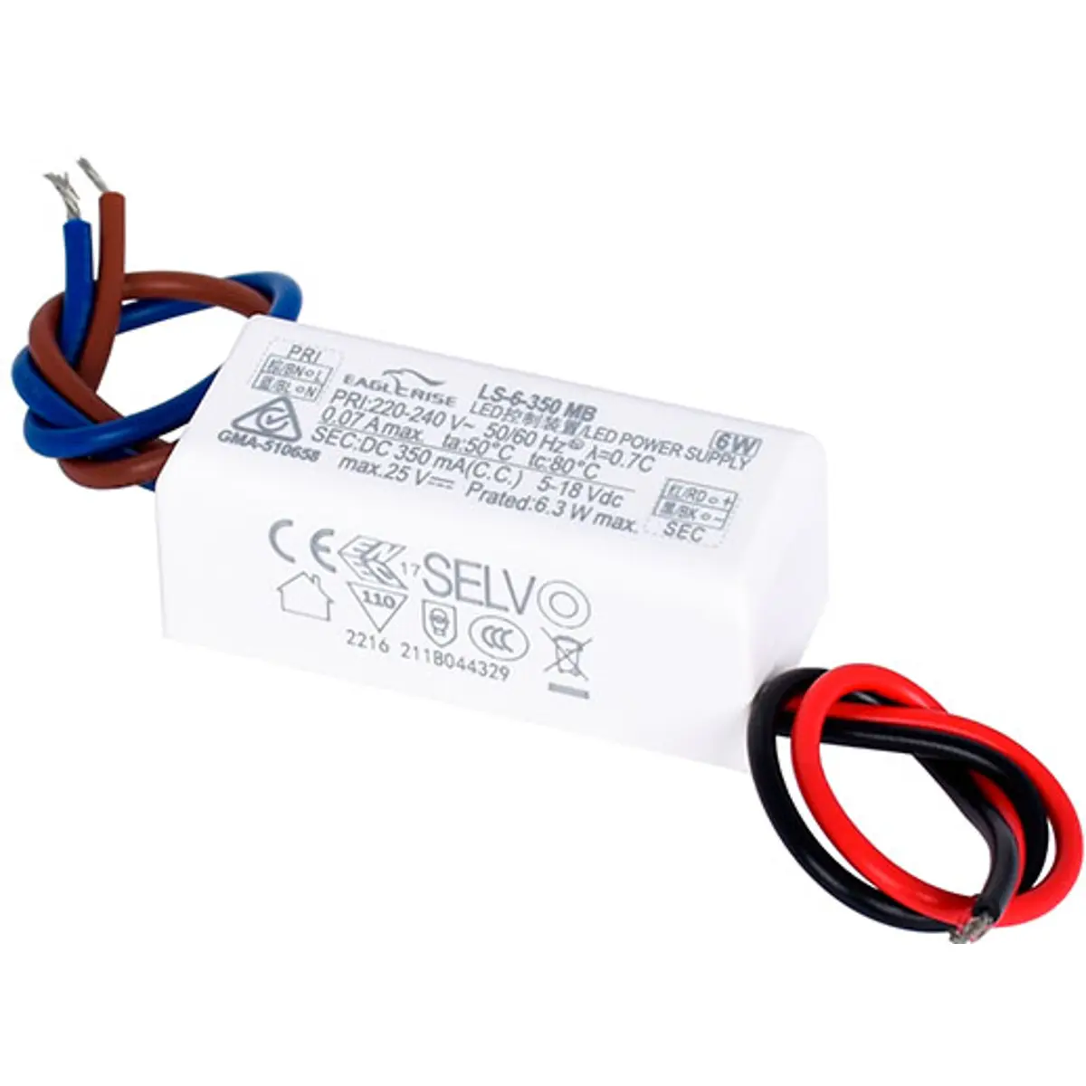 Fonte de alimentação de corrente constante (LED driver) 350mA 6W IP20 - Eaglerise LS-6-350