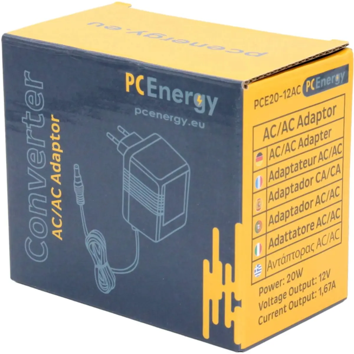 PCEnergy PCE20-12AC - Fonte de alimentação 12VAC 1.67A 20W 5.5x2.1x14mm