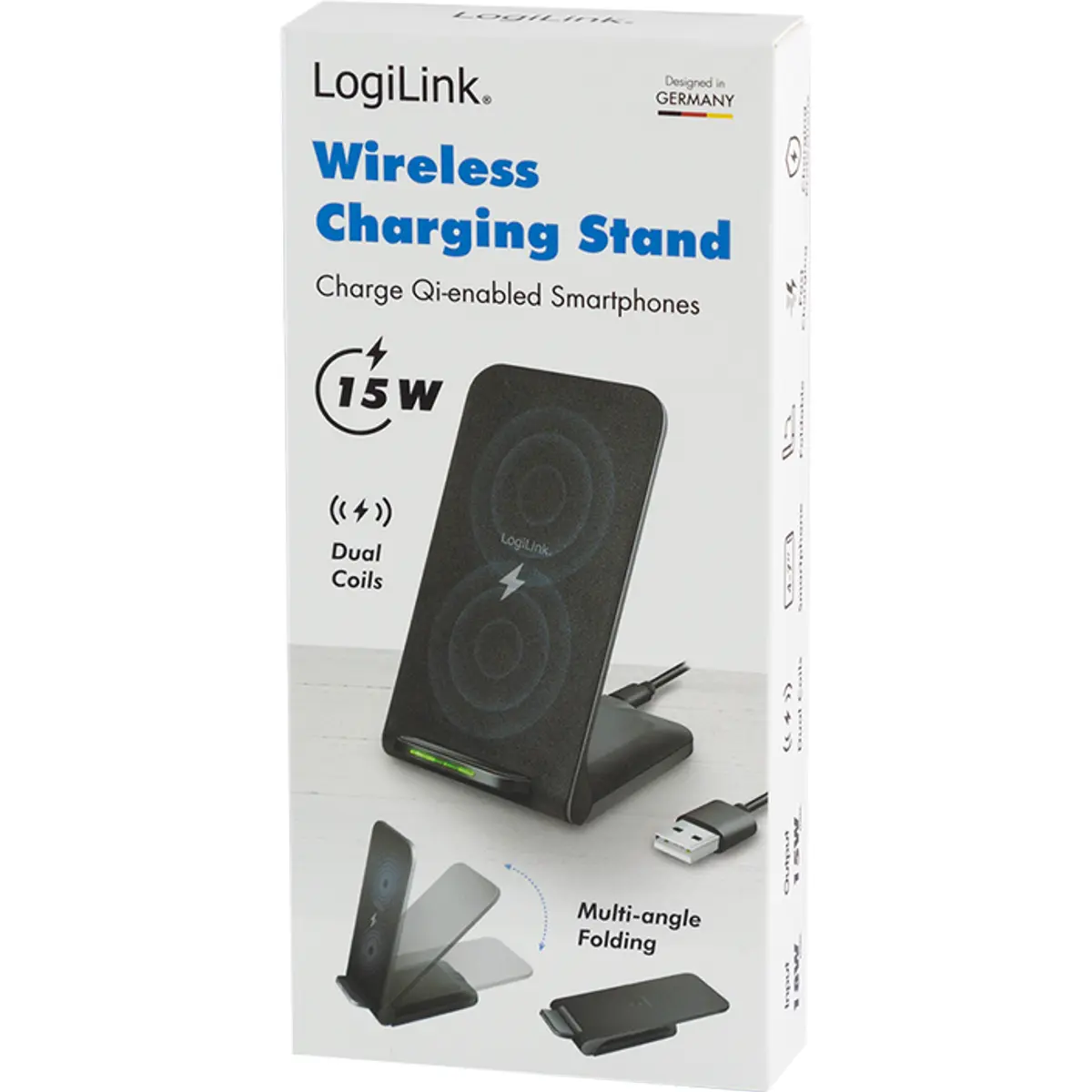 O suporte para smartphone com função de carregamento sem fio LogiLink PA0315 conta com duas bobinas, garantindo um carregamento rápido e eficiente. Pode carregar o seu smartphone tanto na posição vertical como horizontal, eliminando a necessidade de cabos emaranhados e tempos de carregamento demorados. Basta colocar o telefone no suporte e o carregamento inicia-se rapidamente. O design elegante e discreto adapta-se facilmente a qualquer ambiente, tornando-se a adição perfeita para a sua secretária ou mesa de cabeceira.