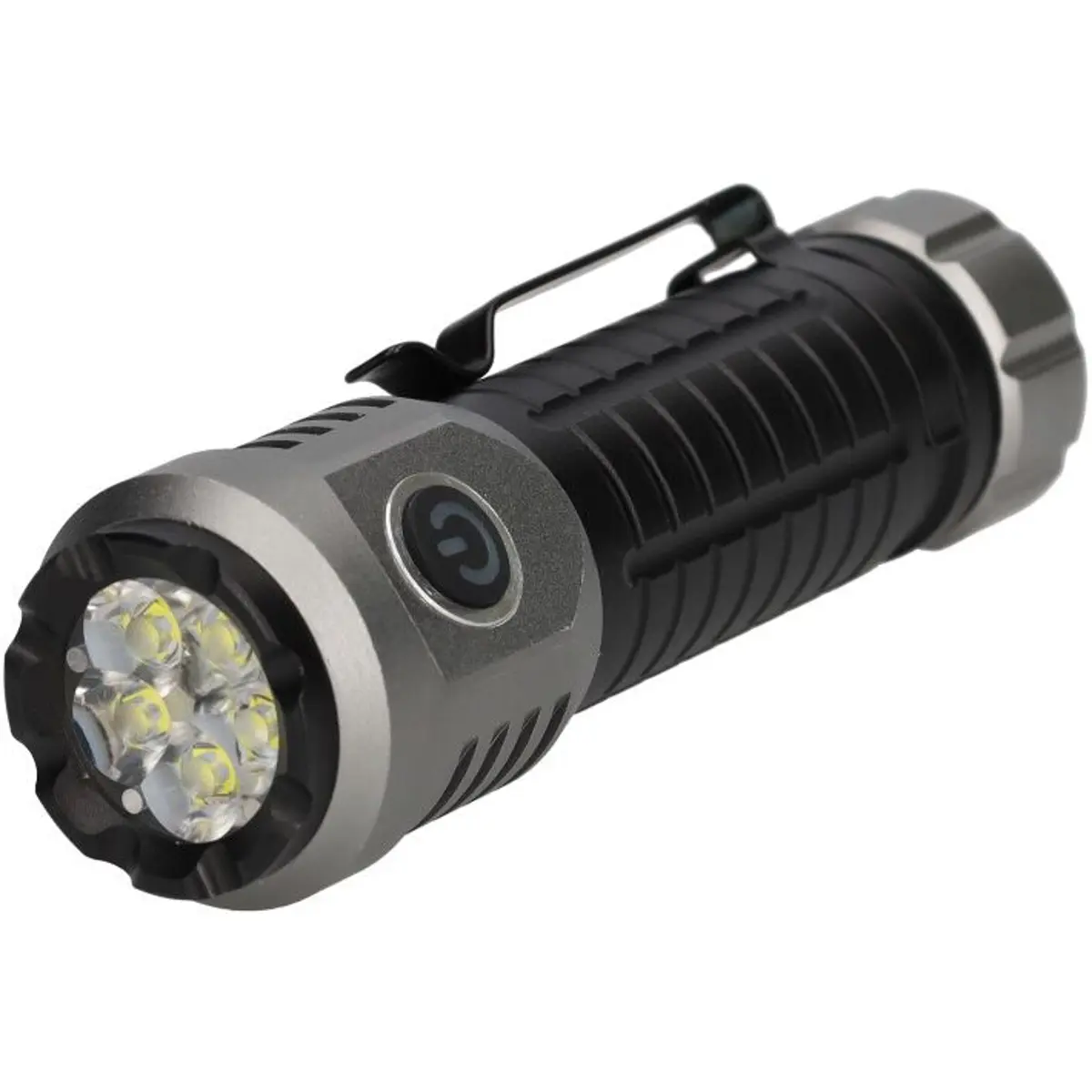 Lanterna de mão recarregável com 20W de potência e até 2000 lúmenes, corpo em alumínio, classificação IPX4 e bateria 18650 de 2000mAh. Oferece autonomia entre 2 e 7 horas, tempo de carregamento de 3 horas e modos de iluminação: baixo, médio, alto, muito alto, turbo, flash rápido, lento e vermelho. Inclui clip e íman, cabo USB-C e distância de iluminação de 148 metros. Dimensões Ø30x140 mm.