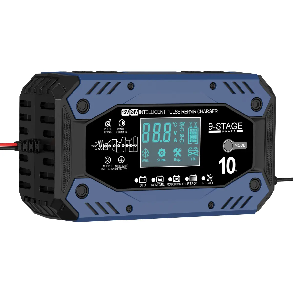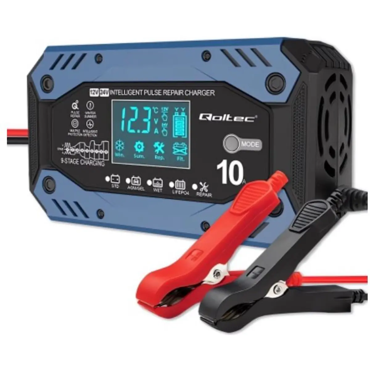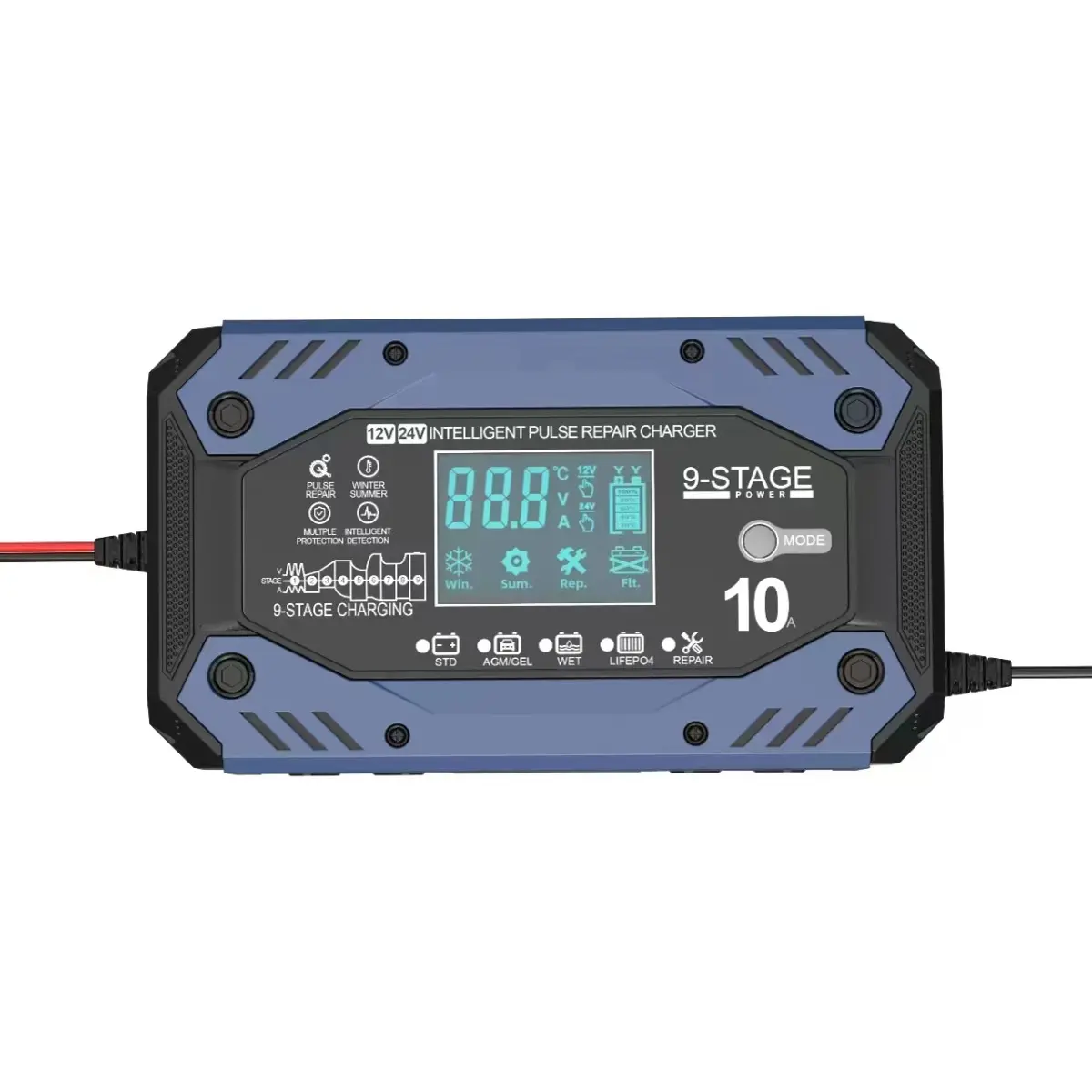 - Compatível com baterias AGM, LiFEPO4, GEL, WET e STD, incluindo:
