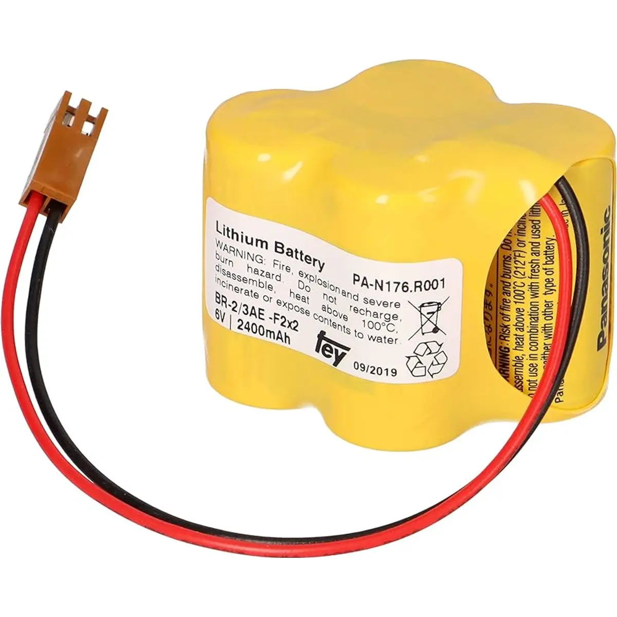 Pack de Bateria LiMnO2 de 6V com 2400mAh, composto por 4 células em configuração F2x2V, com conector JAE SRP175 e dimensões de 46x33.3x35 mm. Substitui baterias originais em aplicações industriais compatíveis com BR-2/3AGCT4A e Fanuc A98L-0031-0025. Compatível com uma variedade de controladores industriais, incluindo Allen Bradley, MicroLogix e GE Fanuc. Ideal para manter alimentação estável em sistemas de automação, com ligação segura e substituição simples, assegurando continuidade de operações sem interrupções.