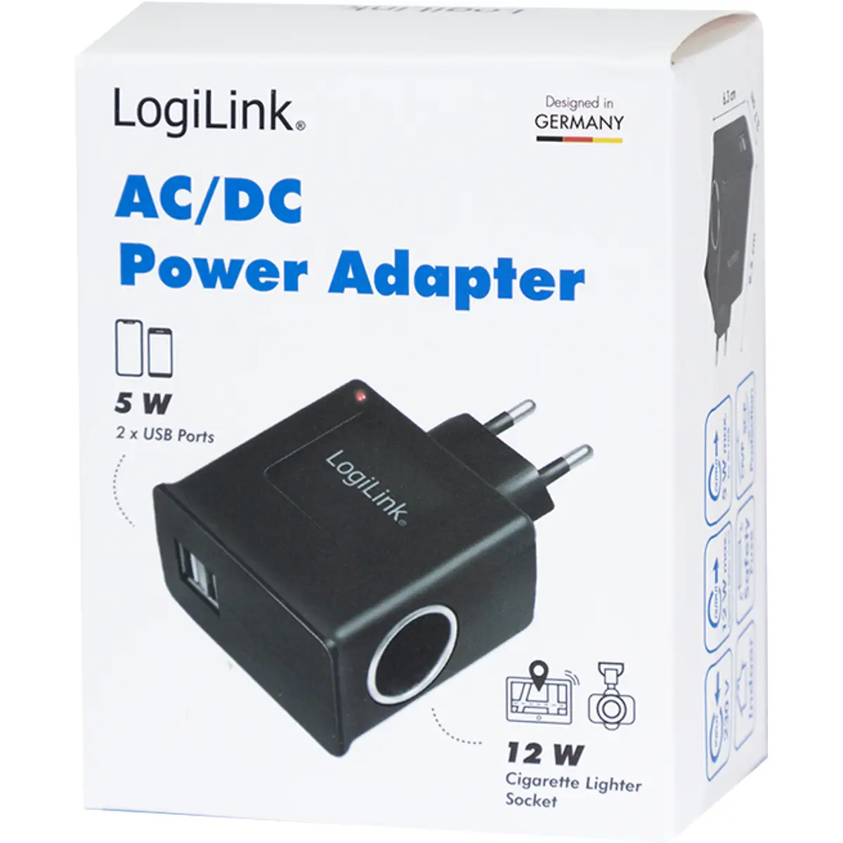 Logilink PA0046 - Carregador 230Vac > 2xUSB-A 1A c/ Ficha de isqueiro fêmea 12W 1A