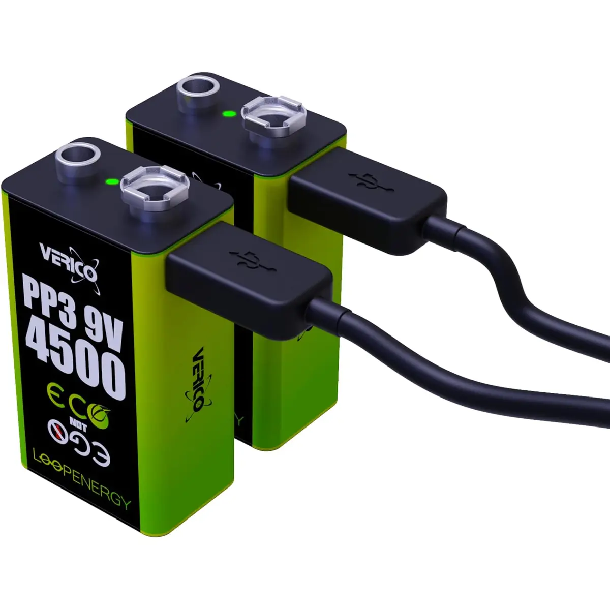 VERICO LoopEnergy - Conjunto de 2 Baterias Li-Ion recarregáveis via USB-C - 6F22 9V 4500mWh