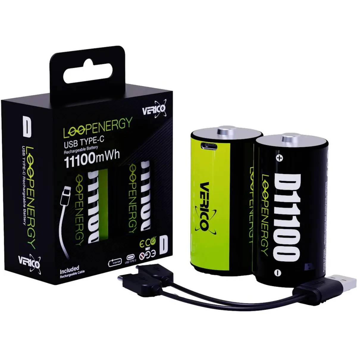 VERICO LoopEnergy - Conjunto de 2 Baterias Li-Ion recarregáveis via USB-C - D 1.5V 1150mWh