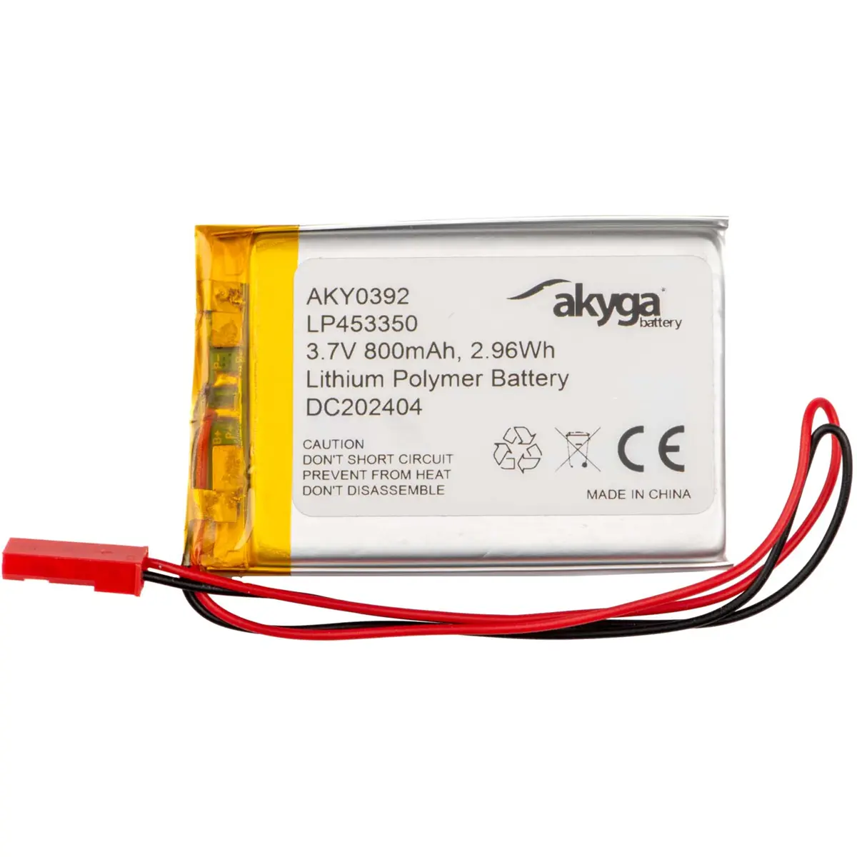 Bateria Li-Po de 3,7V e 800mAh, com dimensões 33x50x4,5mm, equipada com placa de proteção PCB para segurança de utilização e uma ligação JST de 2 pinos para montagem simples. Ideal para electrónica portátil, protótipos e dispositivos que requerem uma fonte recarregável fiável.