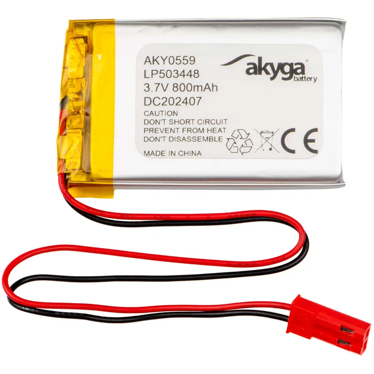 Bateria Li-Po de 3.7V e 800mAh em formato compacto 34x48x5mm. Inclui placa de proteção PCB e ligação JST de 2 pinos, adequada para dispositivos portáteis e projetos de eletrónica que requerem uma fonte de energia estável. Oferece montagem simples, compatibilidade com conectores padrão e desempenho confiável em espaços reduzidos.