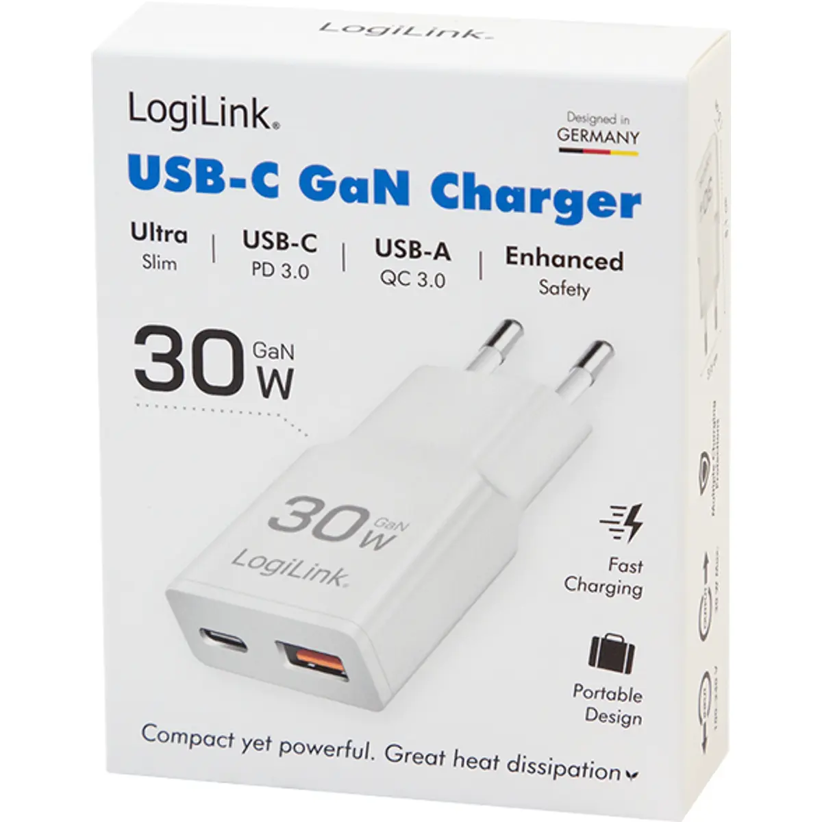 Com tecnologia GaN (nitreto de gálio), este carregador oferece maior densidade de potência e melhor dissipação de calor face aos modelos tradicionais em silício. A sua elevada eficiência permite carregamentos mais rápidos, com total segurança térmica. O suporte para PPS (Programmable Power Supply) adapta automaticamente a potência ideal para cada dispositivo. Com um design ultra-fino e leve, é ideal para viagens e uso diário.