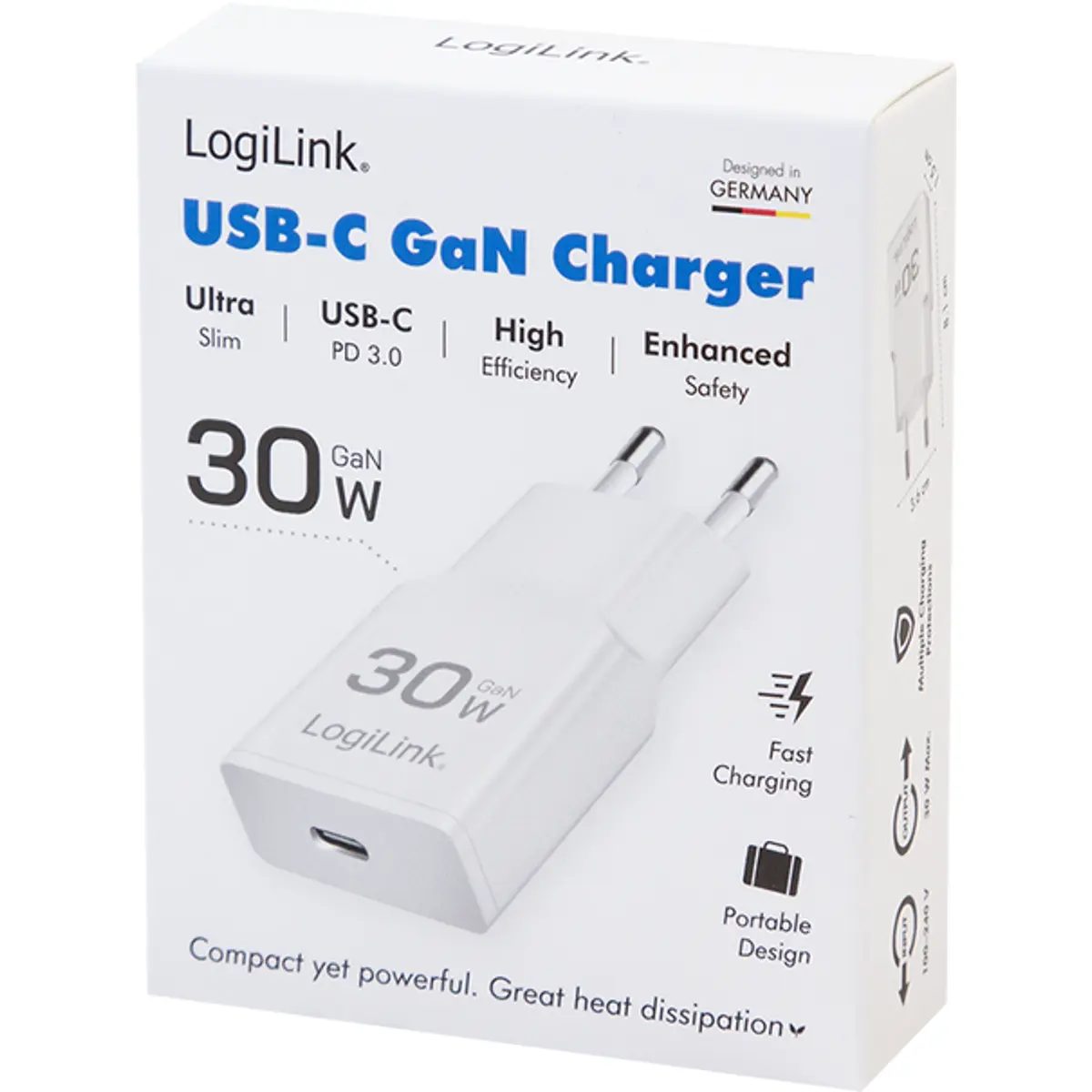 Este carregador compacto com tecnologia GaN (nitreto de gálio) permite transferir mais energia em menos tempo, sem risco de sobreaquecimento, graças à sua elevada eficiência térmica. Ideal para quem procura desempenho e portabilidade, o suporte para PPS (Programmable Power Supply) ajusta automaticamente a potência consoante o dispositivo ligado, assegurando uma carga rápida e segura. Compatível com uma ampla gama de equipamentos, incluindo smartphones, tablets, computadores portáteis e consolas.