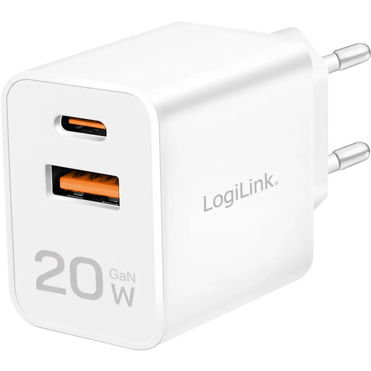 Este carregador de parede oferece possibilidade de recarregar dois dispositivos em simultâneo, como telemóveis, tablets ou acessórios, através de uma porta USB-C com Power Delivery e uma porta USB-A tradicional. Graças à tecnologia GaN (nitreto de gálio), oferece potência de 20 W num formato pequeno e económico, ideal para uso doméstico, viagens ou escritórios. Suporta tensões de entrada de 100–240 V AC, tornando-o compatível com tomadas em diferentes países, e integra proteções contra sobrecorrente, sobretensão e curto-circuito, garantindo segurança no carregamento.