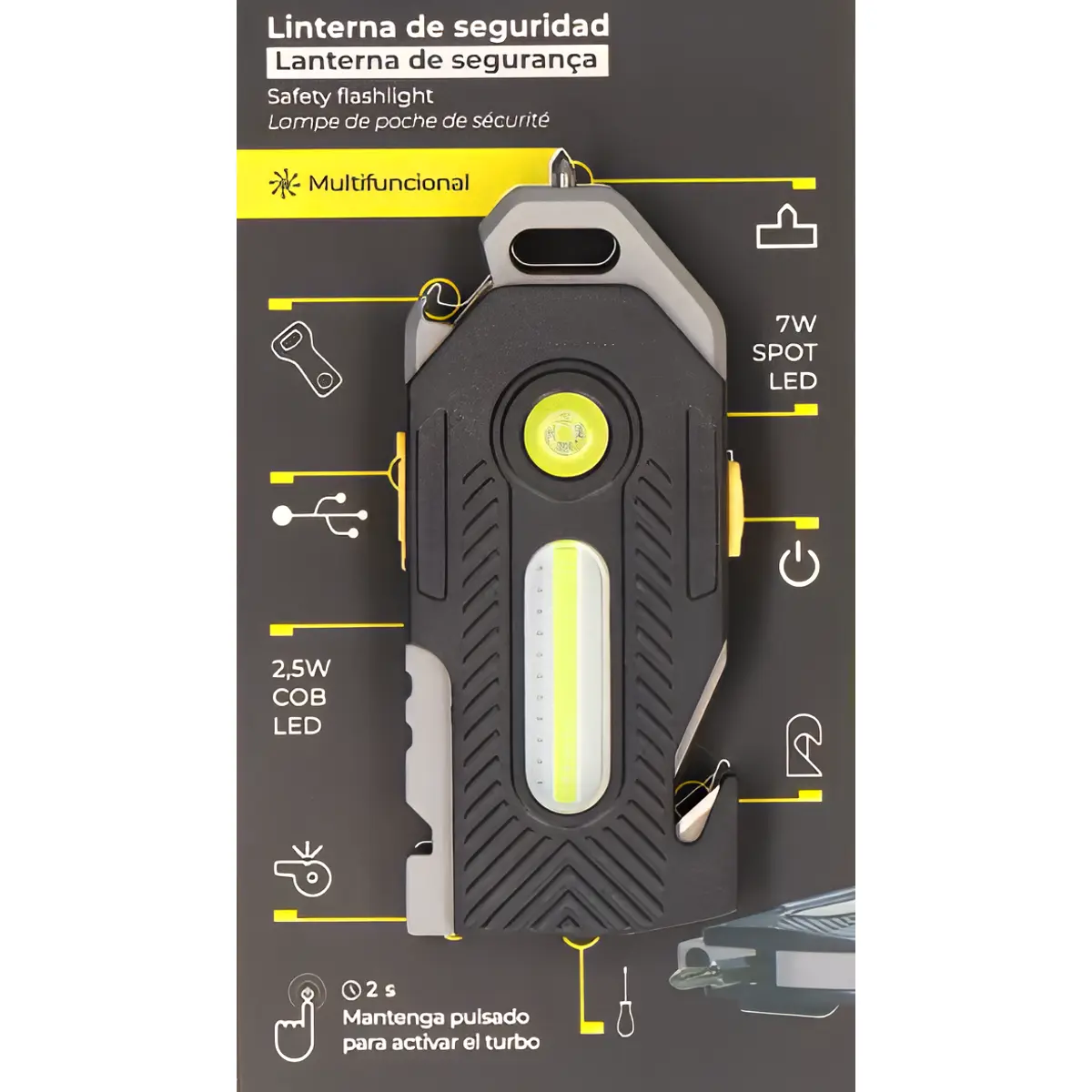 A Lanterna LED COB de Segurança 10W é uma ferramenta multifuncional ideal para profissionais e uso pessoal. Conta com LED COB de alta potência, modos de iluminação variados e acessórios integrados para situações de emergência. Com estrutura robusta e grau de proteção IP44, esta lanterna com LED é indicada para ambientes exigentes e atividades ao ar livre.