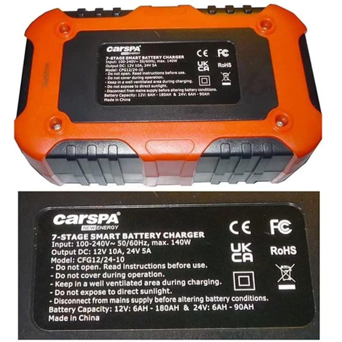 Carregador inteligente e totalmente automático para baterias chumbo-ácido (Pb) e LiFePO4, com corrente até 10A. Permite ligação permanente à bateria em carga e inclui programa de regeneração para baterias Pb. Processo de carga em 7 níveis para maior eficiência e proteção.