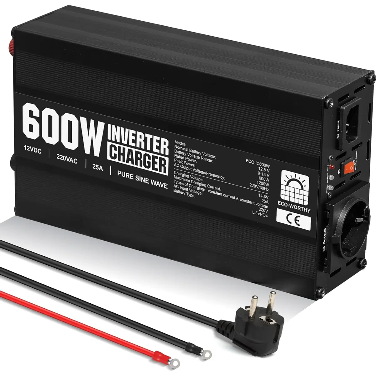 ECO-WORTHY - Carregador LiFePO4 25A c/ inversor de Onda Pura 600W/1200W (função UPS)