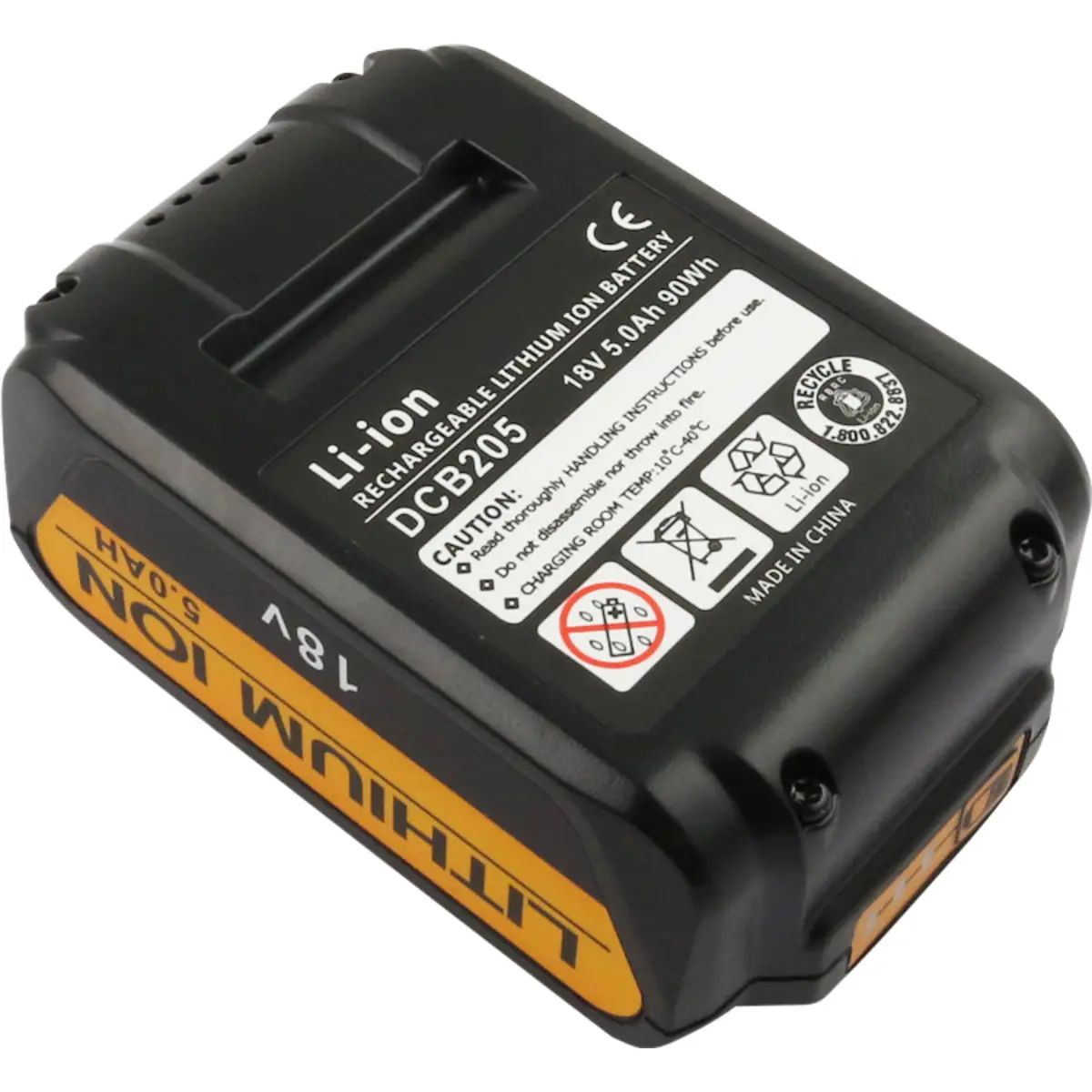 Bateria de substituição compatível com modelos DEWALT, semelhante à DCB200, com tecnologia Li-ion, tensão de 18 V e capacidade de 5000 mAh (90 Wh). Ideal para prolongar o funcionamento das suas ferramentas sem fios DEWALT, garantindo desempenho confiável e duradouro. A bateria é compatível com uma ampla gama de modelos DEWALT, incluindo DCB180, DCB181, DCB182, DCB183, DCB185, DCB200, DCB201, entre outros, bem como com várias ferramentas CL3.C18S, DCB115, DCD740, DCF880, DCS331, DCH213, e muitas mais.
