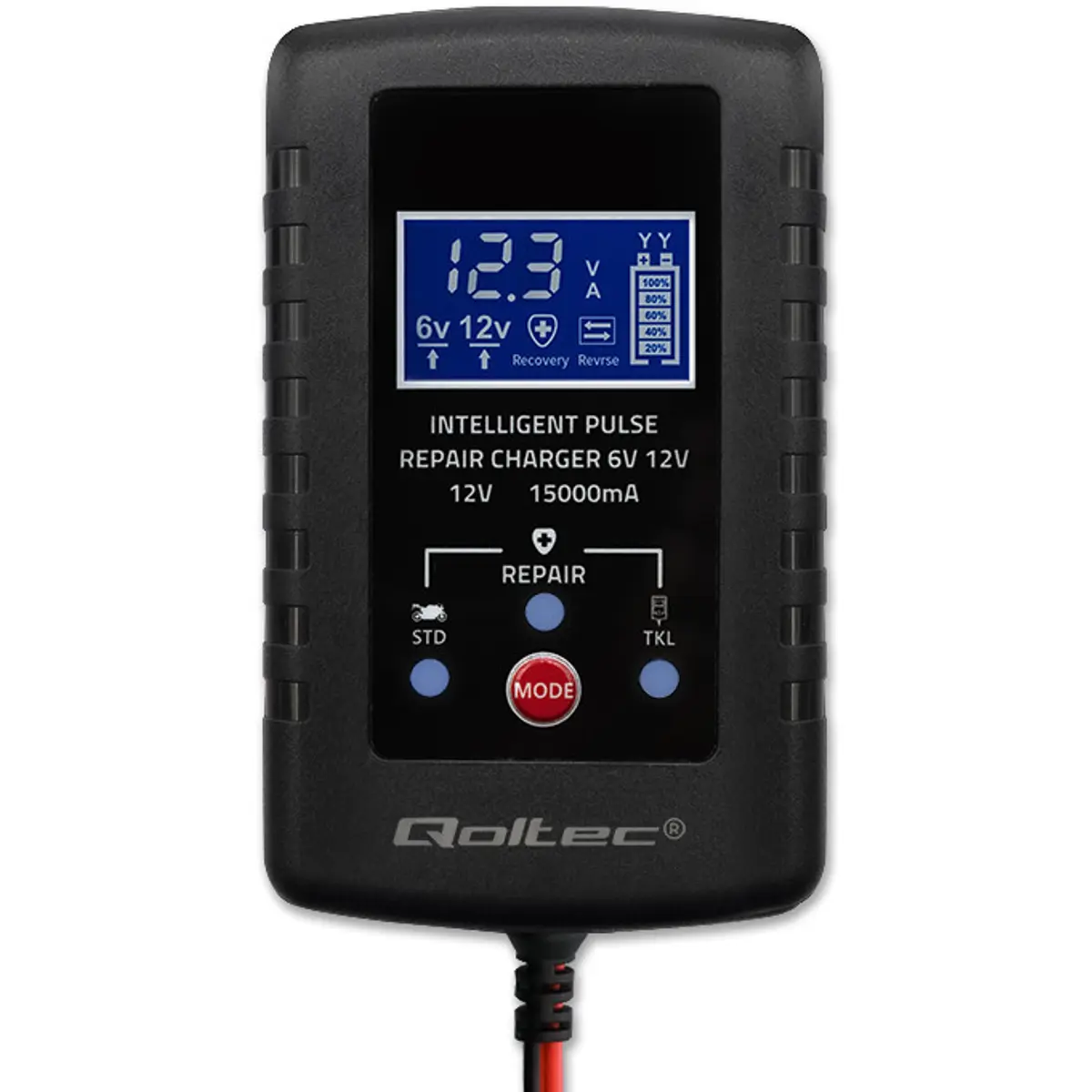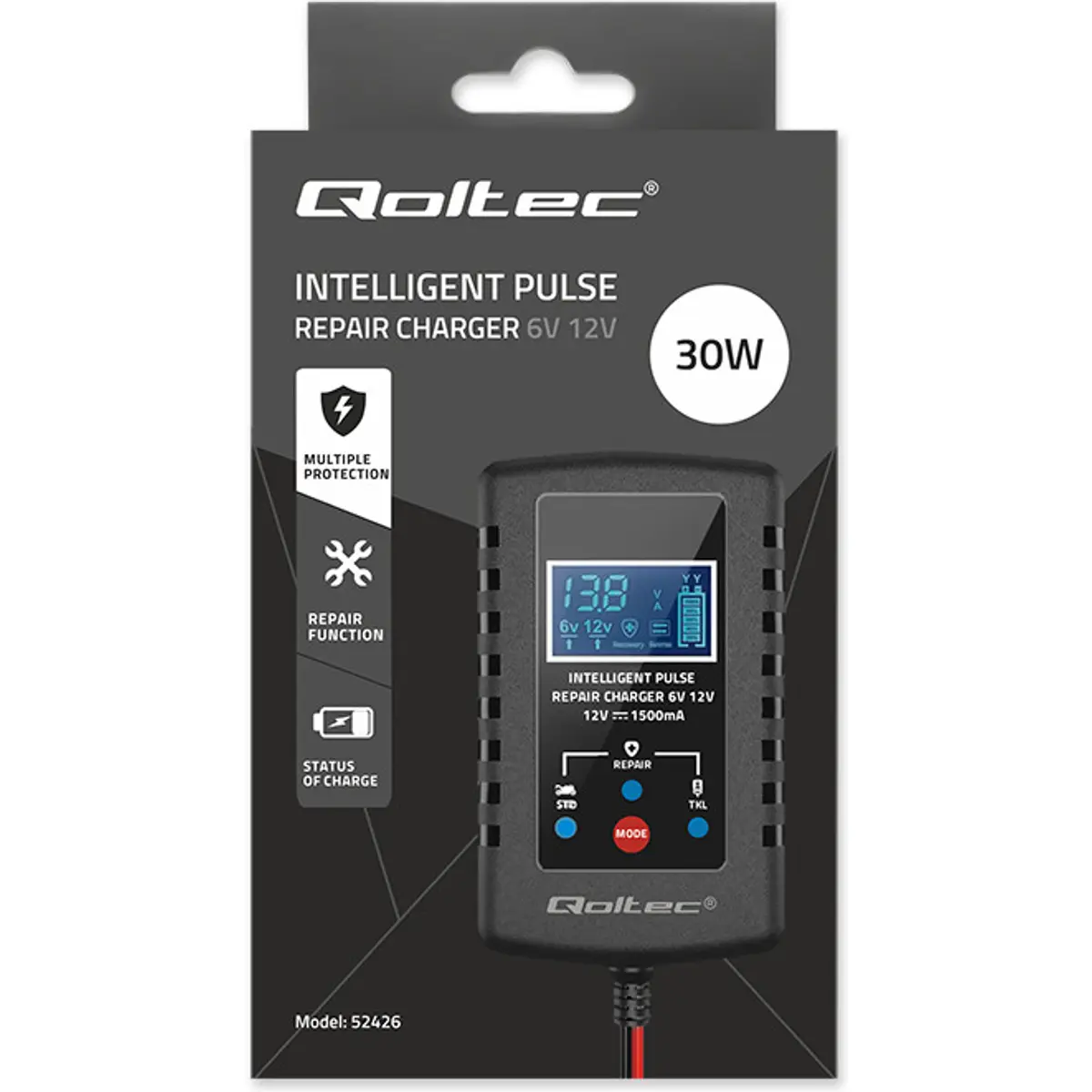 Qoltec 52426 - Carregador para baterias de Chumbo STD/AGM/GEL 6/12VDC 2–20Ah c/ função de reparação