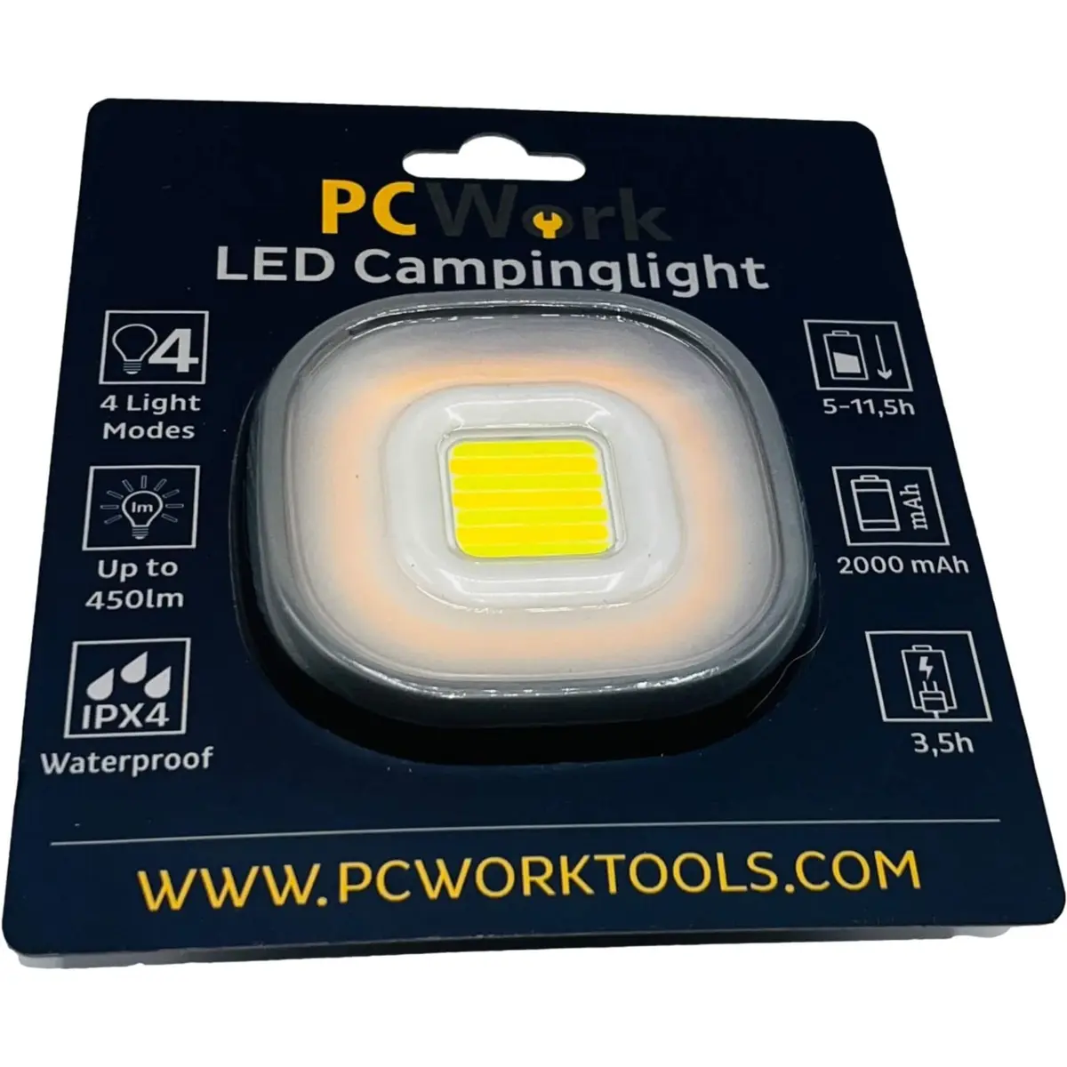 A lanterna de campismo PCW12J combina alta luminosidade, bateria recarregável, função power bank e portabilidade, ideal para atividades ao ar livre.