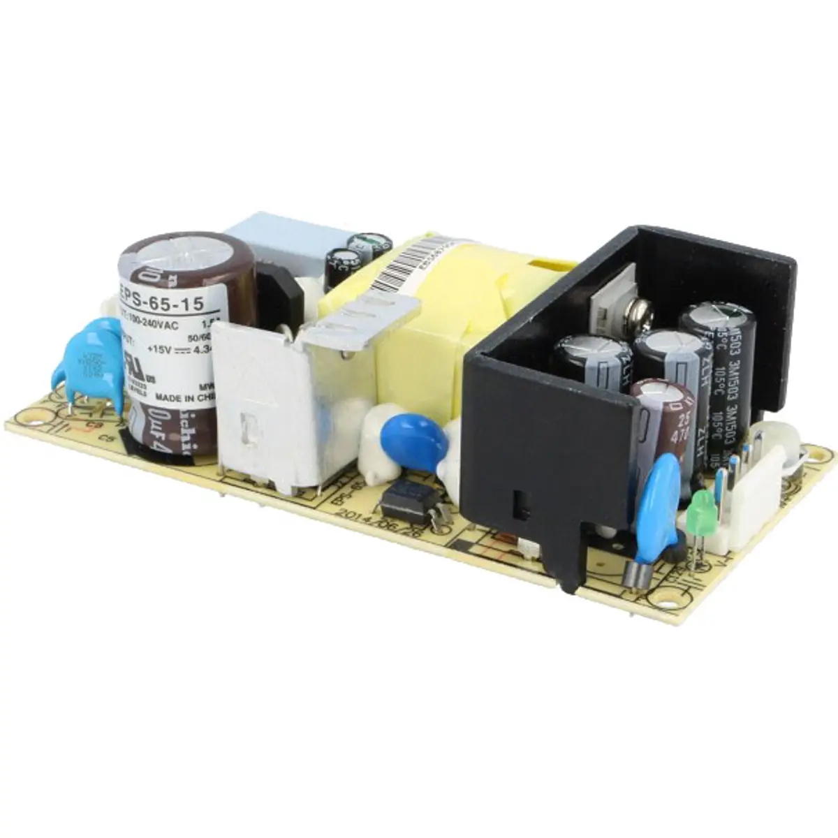 O MEAN WELL EPS-65-15 é uma fonte de alimentação comutada de 65 W em formato open-frame, concebido para integração direta em equipamentos finais. Combina dimensões compactas, elevada eficiência e ampla gama de tensões de entrada, tornando-o uma solução fiável para aplicações industriais, de automação e eletrónica profissional que exigem alimentação estável a 15 V DC.