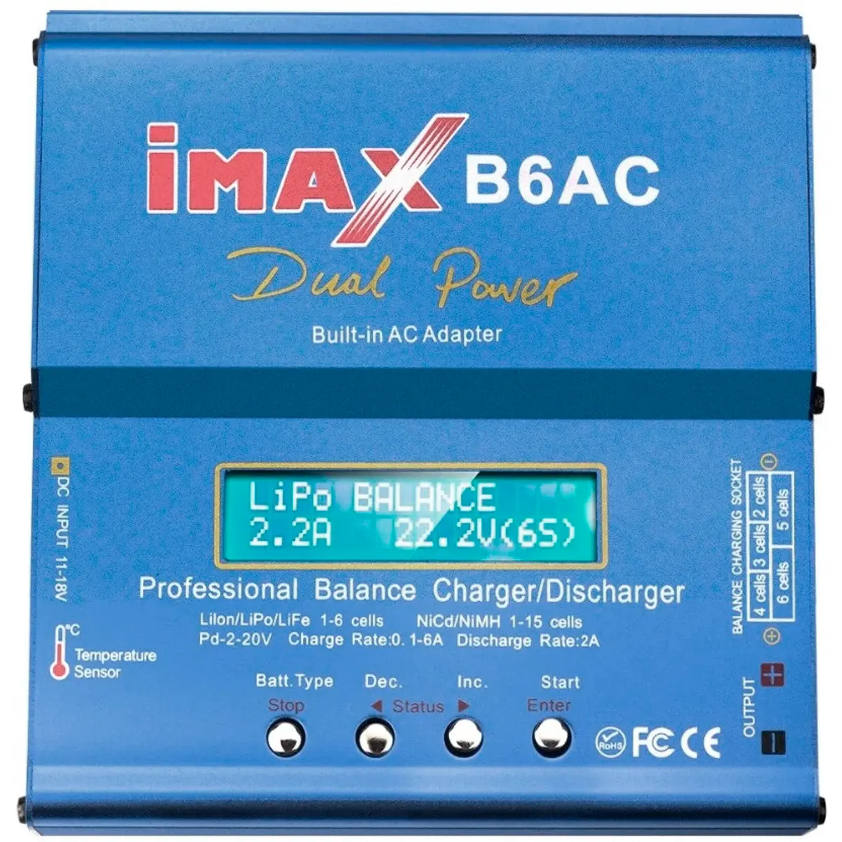 - Baterias Li-Ion / Li-Po / LiFe: 1~6 séries