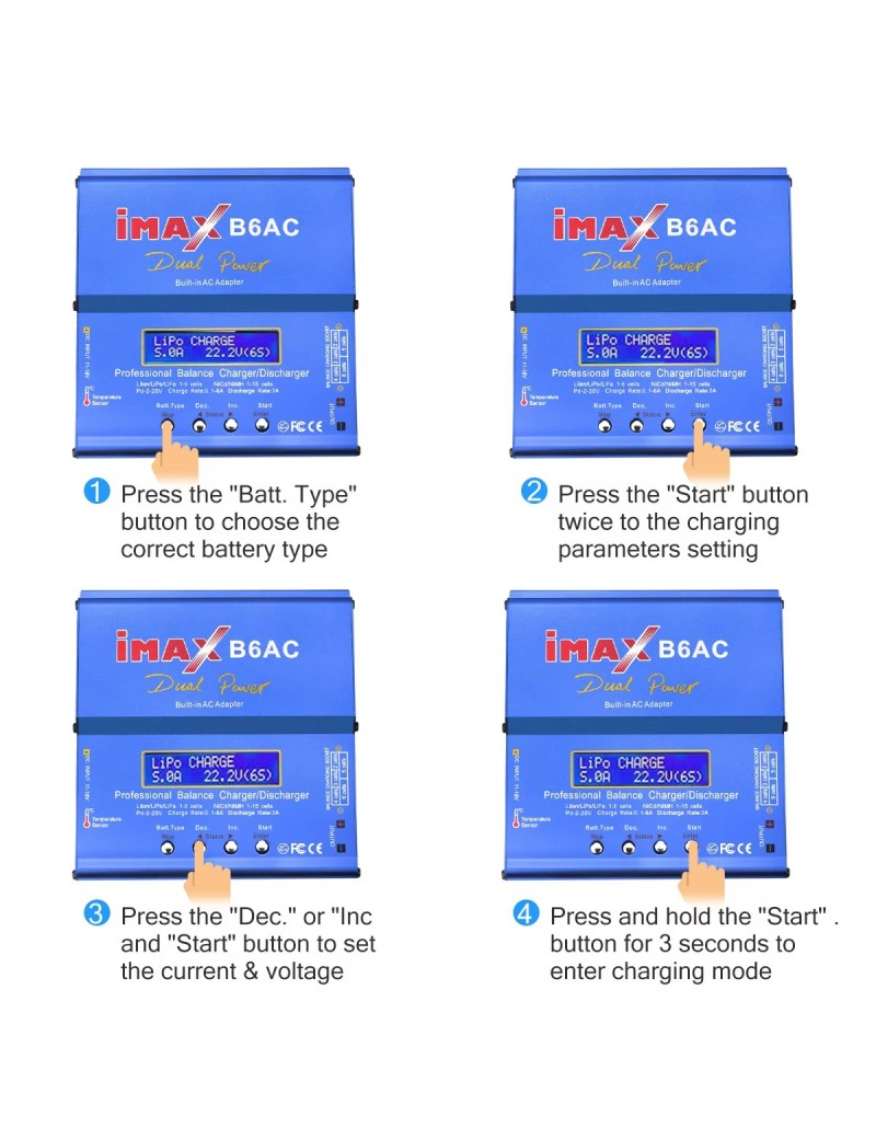 O B6AC 80W é um carregador e descarregador inteligente de alta tecnologia, com gestão profissional por microprocessador integrado, detetor de temperatura e adaptador incorporado. Suporta múltiplos tipos de baterias recarregáveis e oferece modos de carga rápida e de armazenamento, garantindo máxima segurança e proteção da bateria.