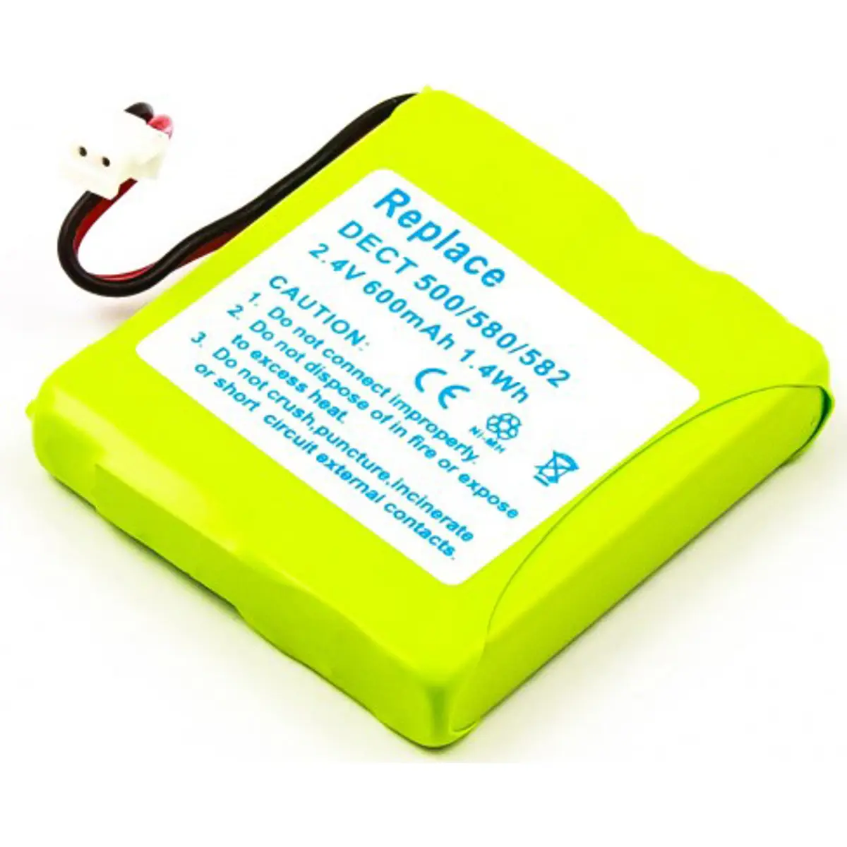 Bateria para telefone sem fios compatível com Audioline Slim Dect 500, 580, 582 2.4V 600mAh 1.4Wh NiMH