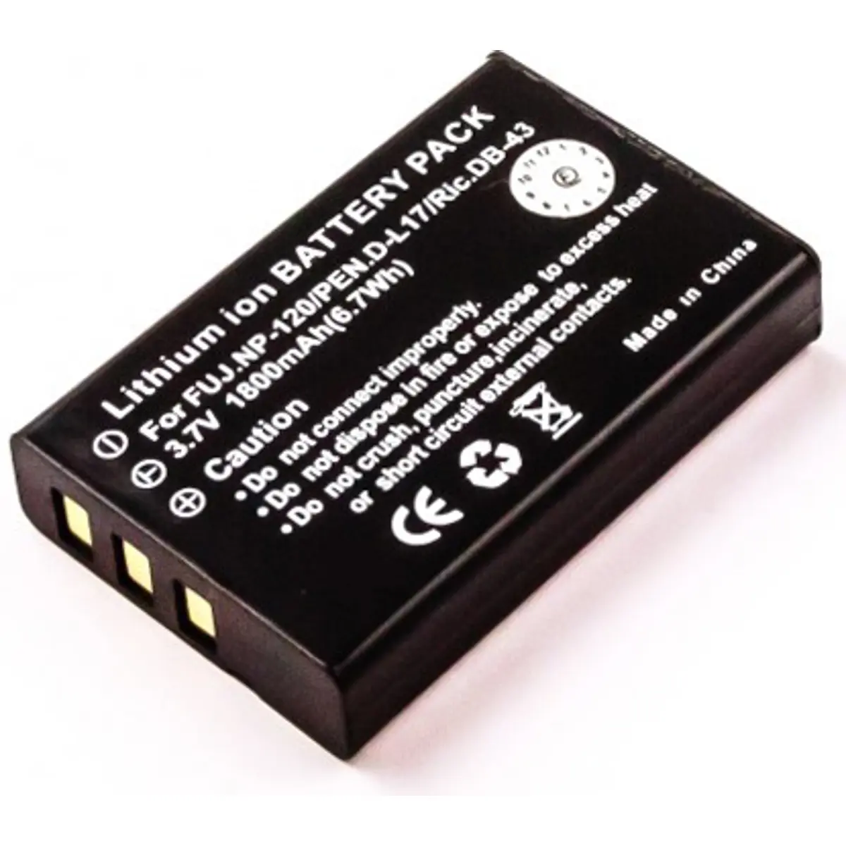 Bateria para câmara compatível com Contax / Fujifilm NP-120 / Kyocera BP-1500S / Pentax D-LI7 / Ricoh DB-43 / Toshiba PX1657 3.7V 1800mAh 6.Wh Li-Ion