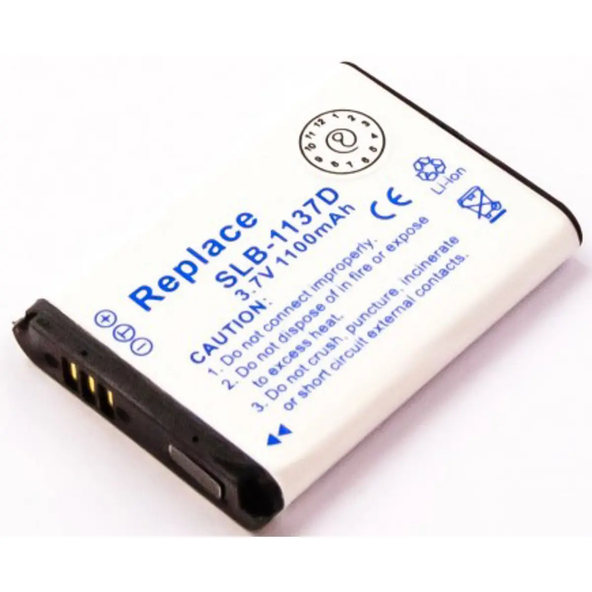 Bateria recarregável de Li-Ion para câmaras, com 3.7V, 1100mAh e 4Wh para maior autonomia. Possui dimensões compactas de 46.1 x 34 x 6.7 mm e peso de apenas 18 g, facilitando a substituição e instalação em sistemas de vigilância. Compatível com modelos que utilizam baterias de 3.7V, incluindo o formato SLB-1137D, assegurando desempenho estável e tempo de funcionamento prolongado.