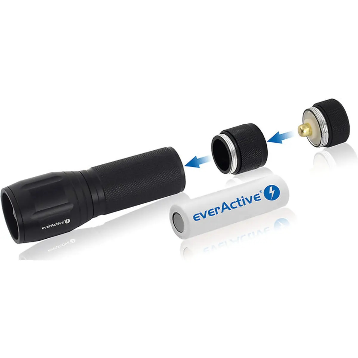 Adaptador para a lanterna everActive FL-300+ para usar baterias de íon de lítio 18650.