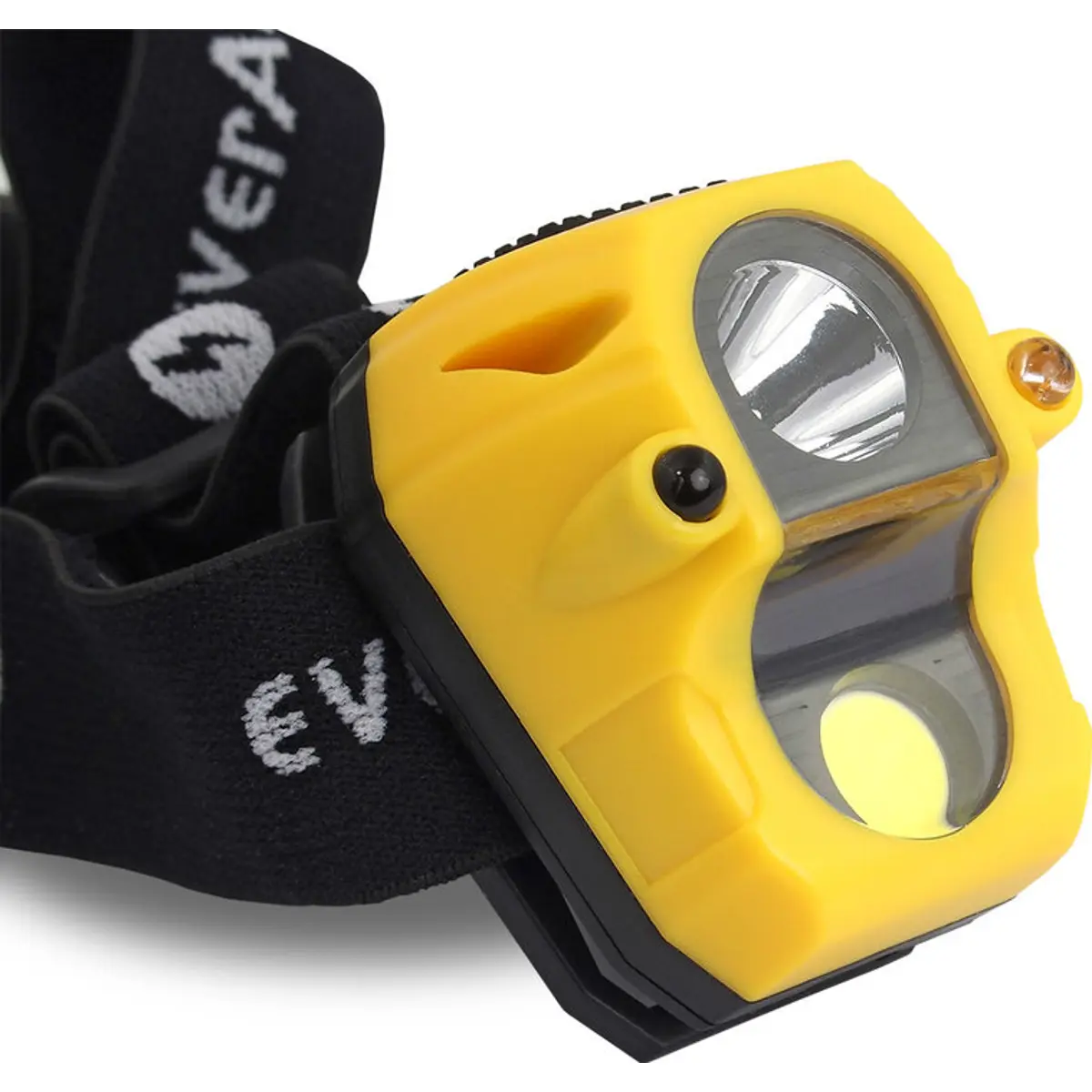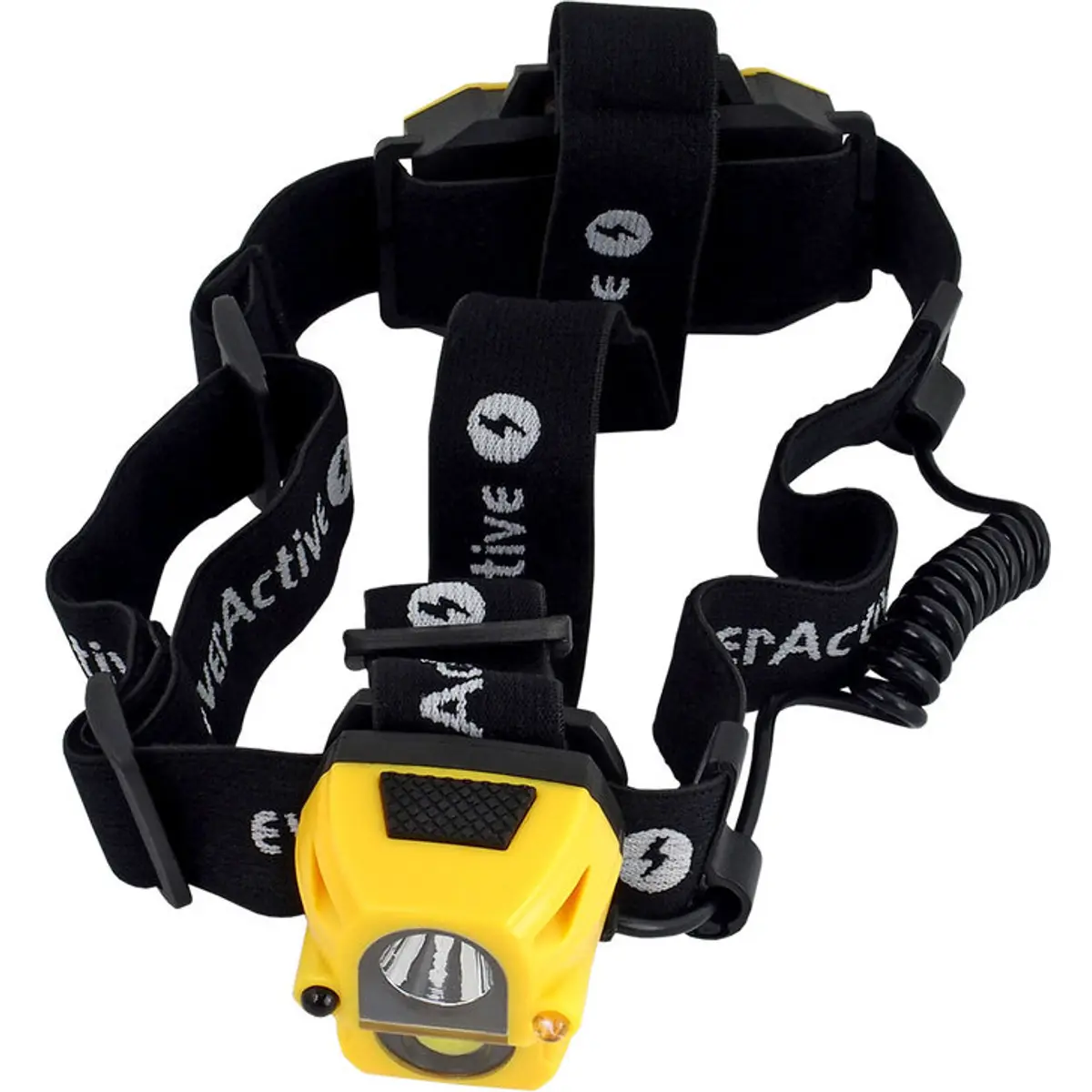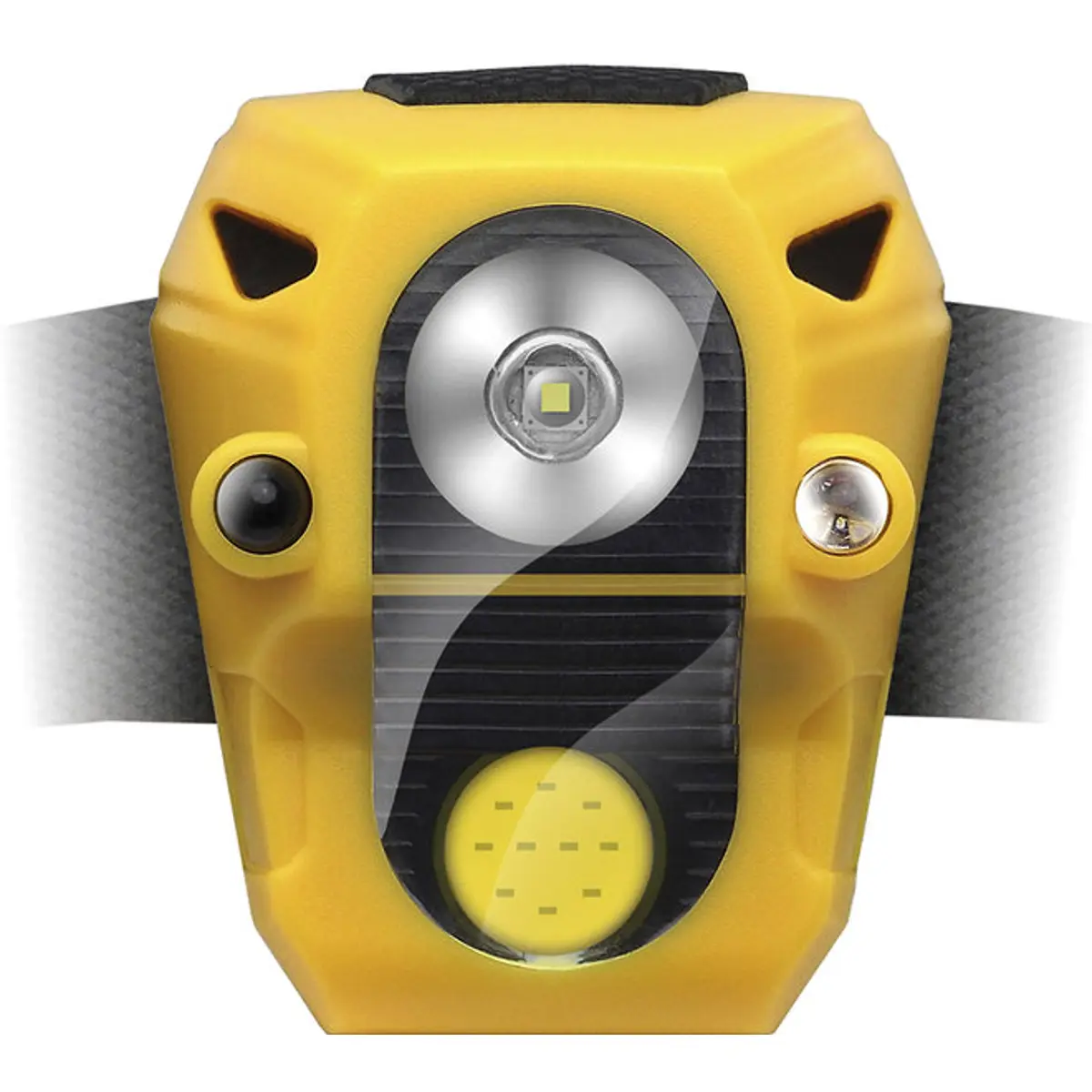 Lanterna de cabeça com dois LEDs independentes, XP-E2 3W e COB 3W, oferece 200 lúmens e alcance de até 150 metros. Possui sensor de proximidade para funcionamento sem contacto, permitindo ligar, mudar de modos e desligar com um simples gesto. Oferece quatro modos de iluminação: 100% XP-E2, 100% COB, 100% XP-E2 + 100% COB e intermitente. Alimentação por 3 pilhas AAA (R03); pilhas não incluídas. Corpo em plástico, impermeável, com cores amarela/preta. Inclinação horizontal ajustável e fita dupla flexível para conforto durante o uso.