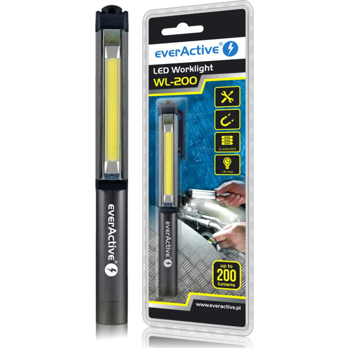 A WL-200 é uma lanterna tipo gambiarra muito pequena e útil, da marca everactive . A emissão máxima de luz de 200 lúmens fornece excelente iluminação do espaço de trabalho, mesmo na escuridão total.