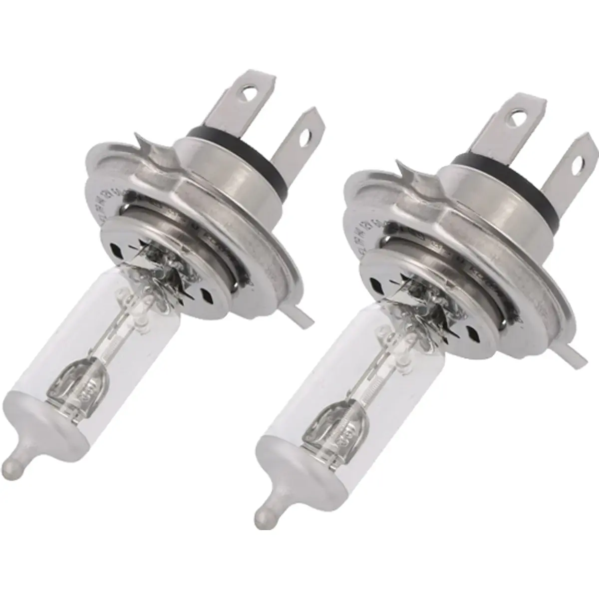 Lâmpada automóvel do tipo H4 com casquilho P43t para iluminação de automóveis, 12V, potência 60/55W, temperatura de cor 3400K, oferece até 50% mais luz. O conjunto traz duas unidades, adequada para substituição rápida e estável, compatível com sistemas de iluminação automóvel, fácil de instalar e com boa luminosidade para condução diurna e noturna, proporcionando melhor visibilidade, segurança e desempenho.