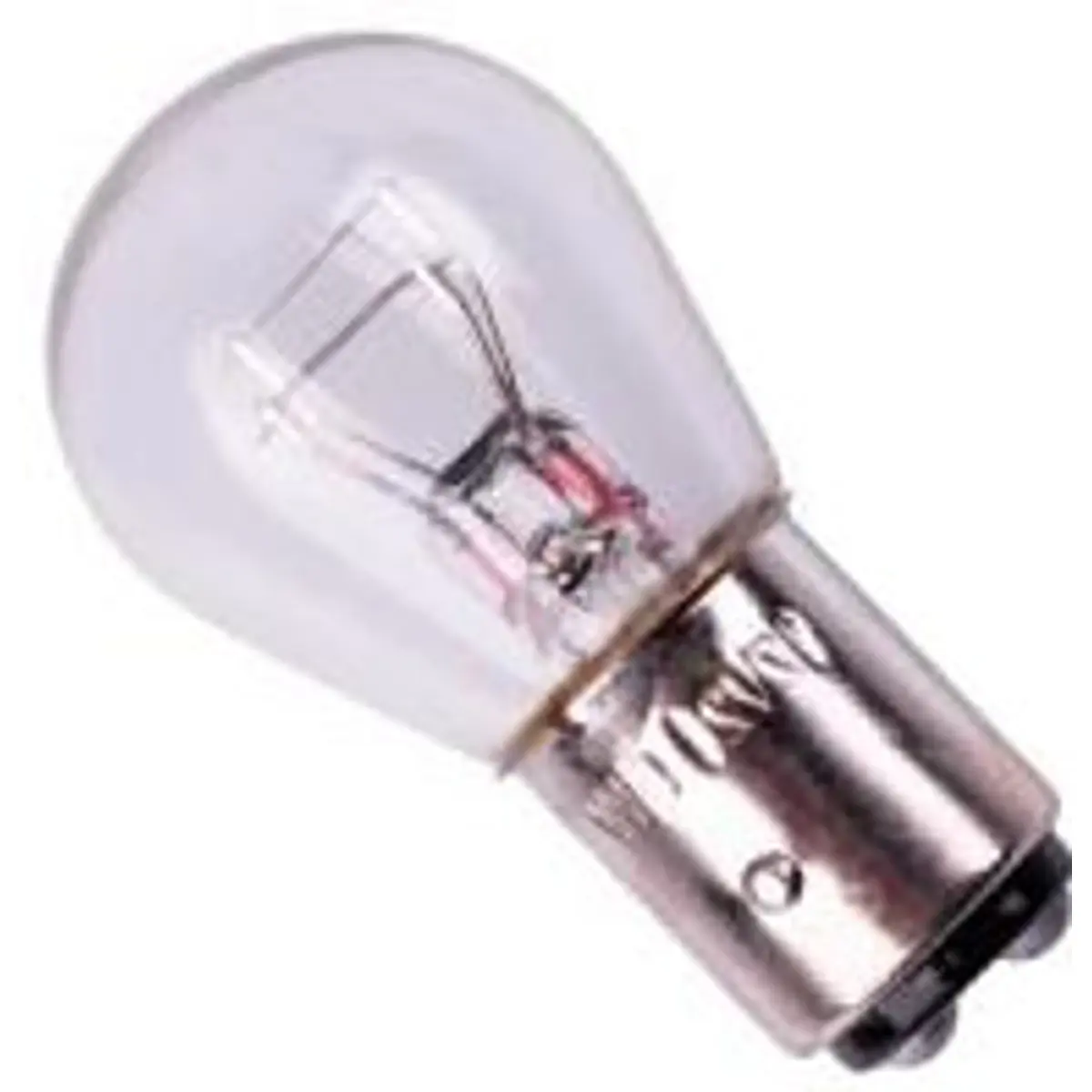 Lâmpada automóvel com base BAY15d, 12V e potência 21/5W, com dois filamentos, adequada para veículos que utilizam esta base. Pode ter pequenos defeitos de acabamento, mas não interfere com o bom funcionamento. Produto de baixo custo, simples de substituir, oferece iluminação estável e fiável. Ideal para substituições rápidas em faróis de posição ou de condução, mantendo compatibilidade com o sistema elétrico de 12V.