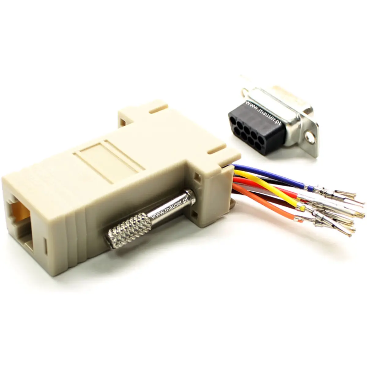 Este adaptador permite ligar uma interface D-Sub de 9 pinos a uma ligação RJ45 fêmea, com configuração ajustável. Ideal para ligações seriais a redes ou terminais, oferece solução compacta para conversão de conectores, mantendo compatibilidade entre padrões. O núcleo é simples de usar, sem necessidade de ferramentas, proporcionando flexibilidade na gestão de cablagens e de alterações de porta.