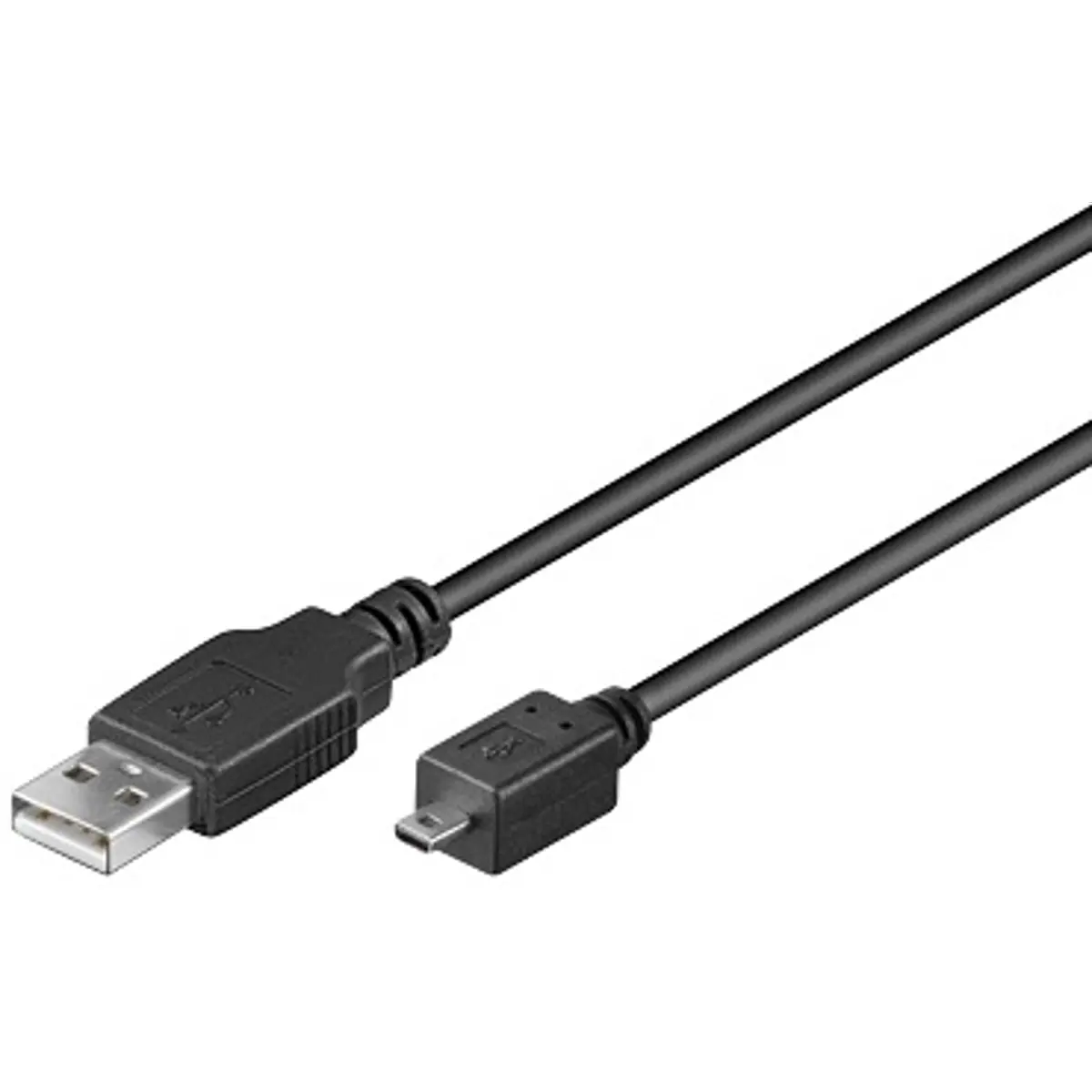 Este cabo USB 2.0 de tipo A para mini-B (8 pinos), com cabo redondo, oferece ligação estável entre dispositivos USB 2.0. Possui condutor de cobre (AWG 28), duas blindagens, cor preta e comprimento de 1,8 m, com taxa de transmissão de até 0,48 Gbit/s. Adequado para ligar câmaras digitais e outros equipamentos entre várias marcas, garantindo compatibilidade, fiabilidade e boas velocidades de dados e alimentação.