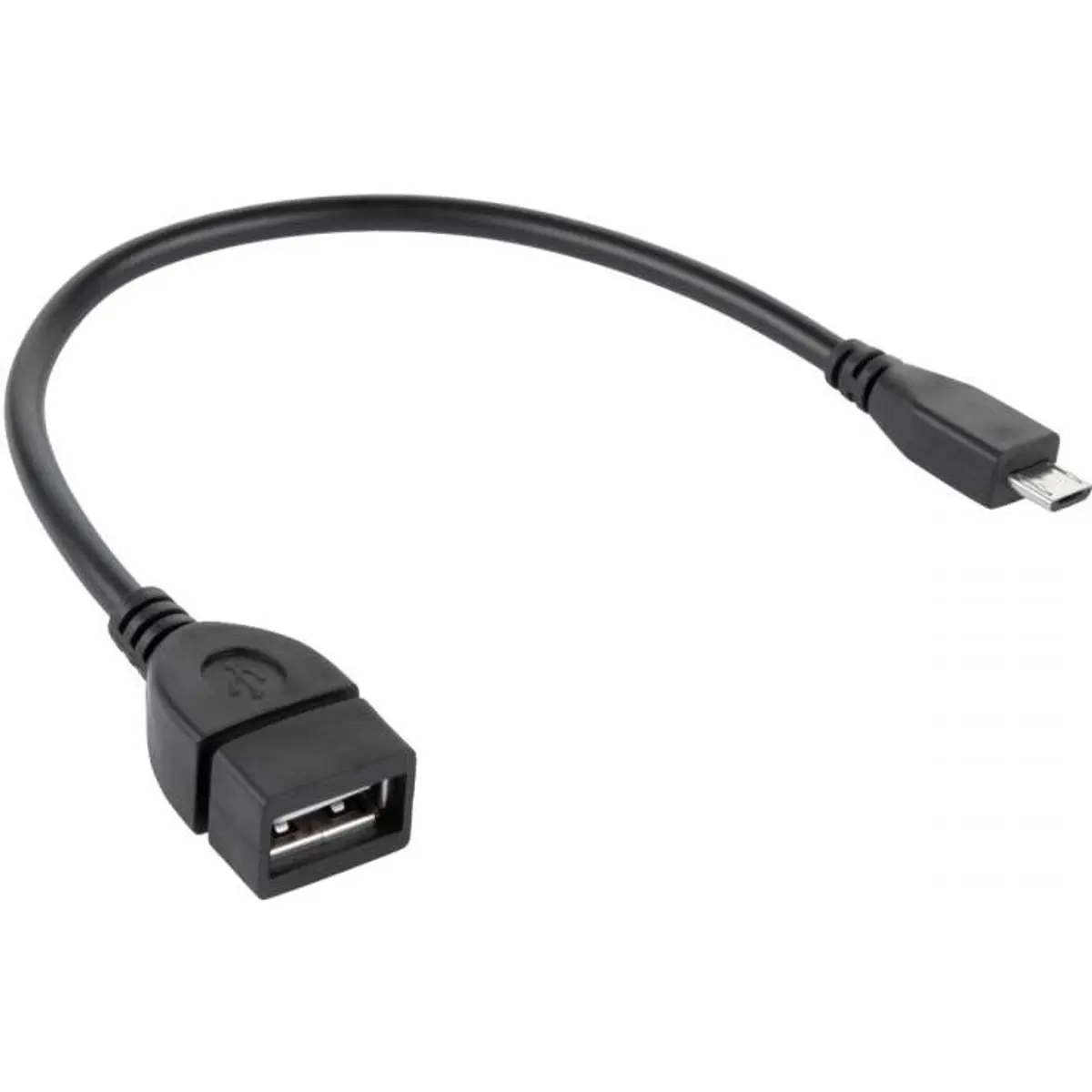 O cabo USB A para micro USB OTG permite ligar dispositivos de armazenamento, teclados e outros periféricos a smartphones e tablets compatíveis com OTG. Com ficha USB tipo A fêmea, conectores micro-USB macho, comprimento de 15 cm e acabamento preto, é ideal para transferir dados, expandir a conectividade móvel e utilizar periféricos sem necessidade de adaptadores adicionais. Compacto e portátil, facilita a utilização em deslocações.