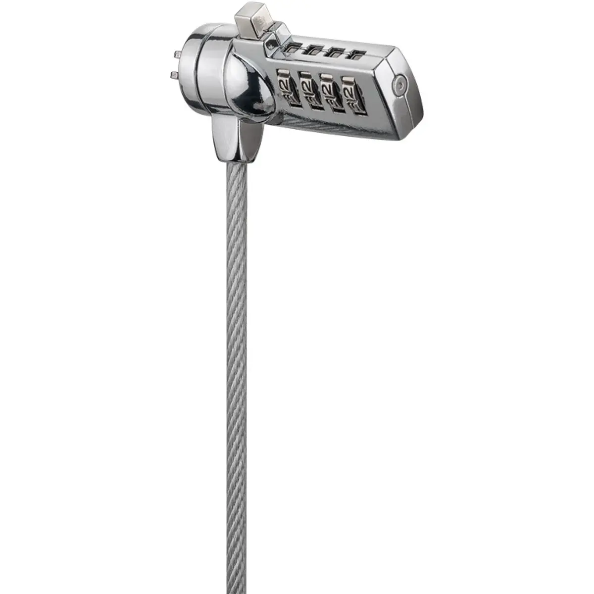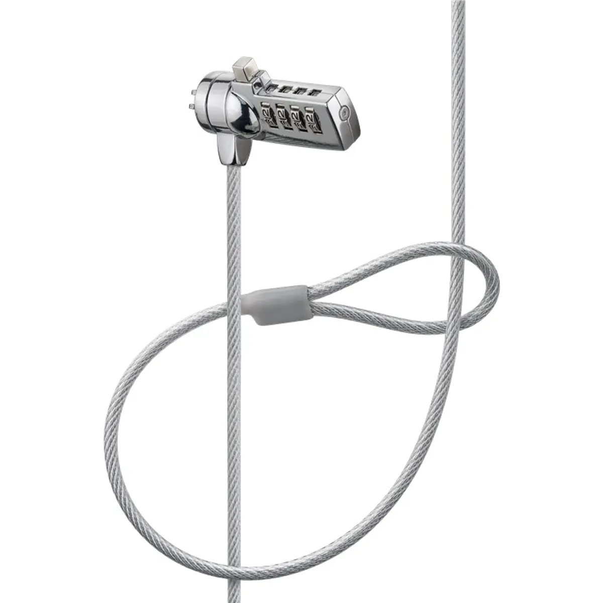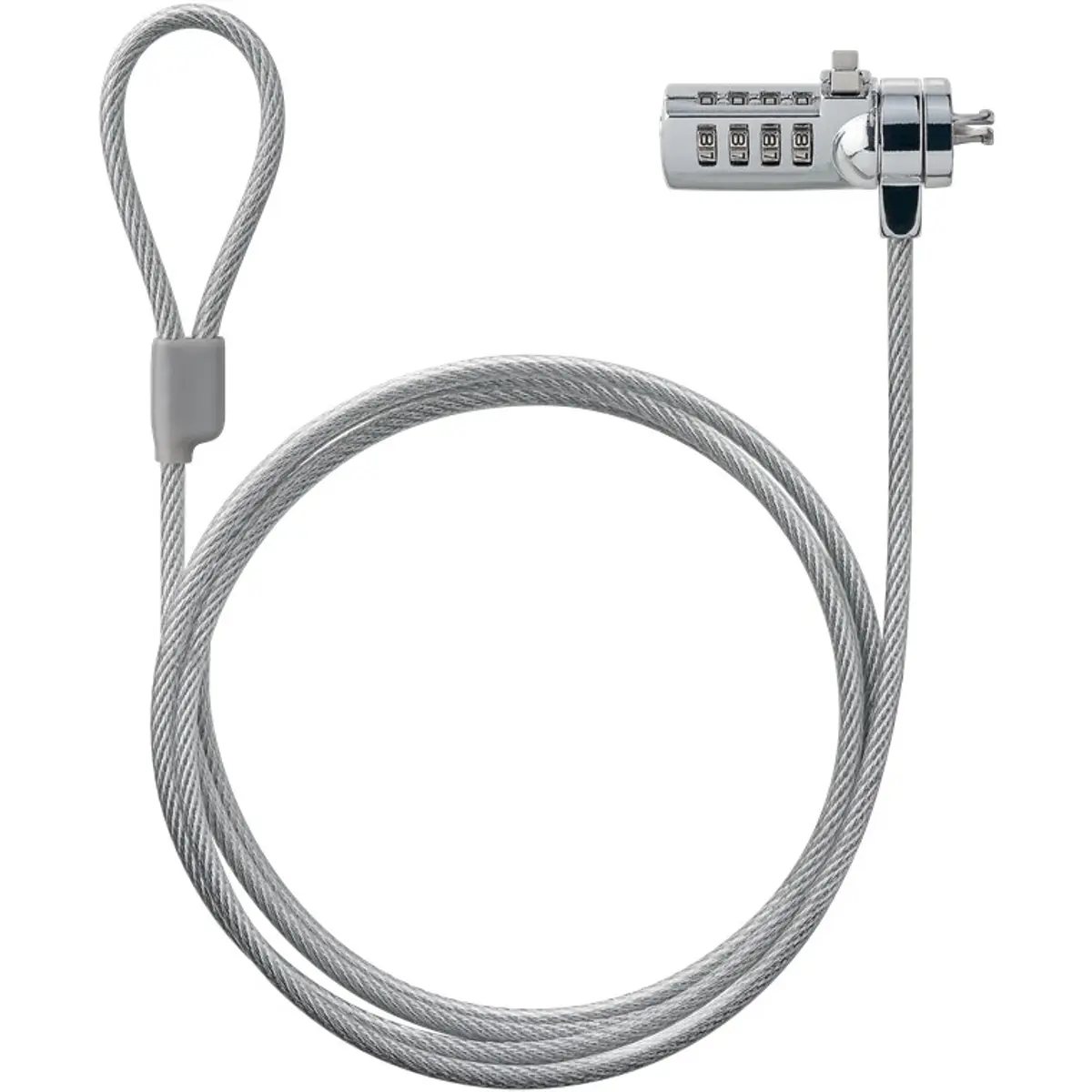 Este cadeado para portátil oferece proteção anti-roubo em locais públicos através de um fecho por código de 4 dígitos. O cabo de aço revestido em plástico, com diâmetro de 4,5 mm e comprimento de 1,5 m, permite prender laptops, PCs, projetores ou ecrãs com segurança. O pino de bloqueio em forma de T assegura que apenas o proprietário pode abrir. Design robusto, peso de 169 g, adequado para deslocações.