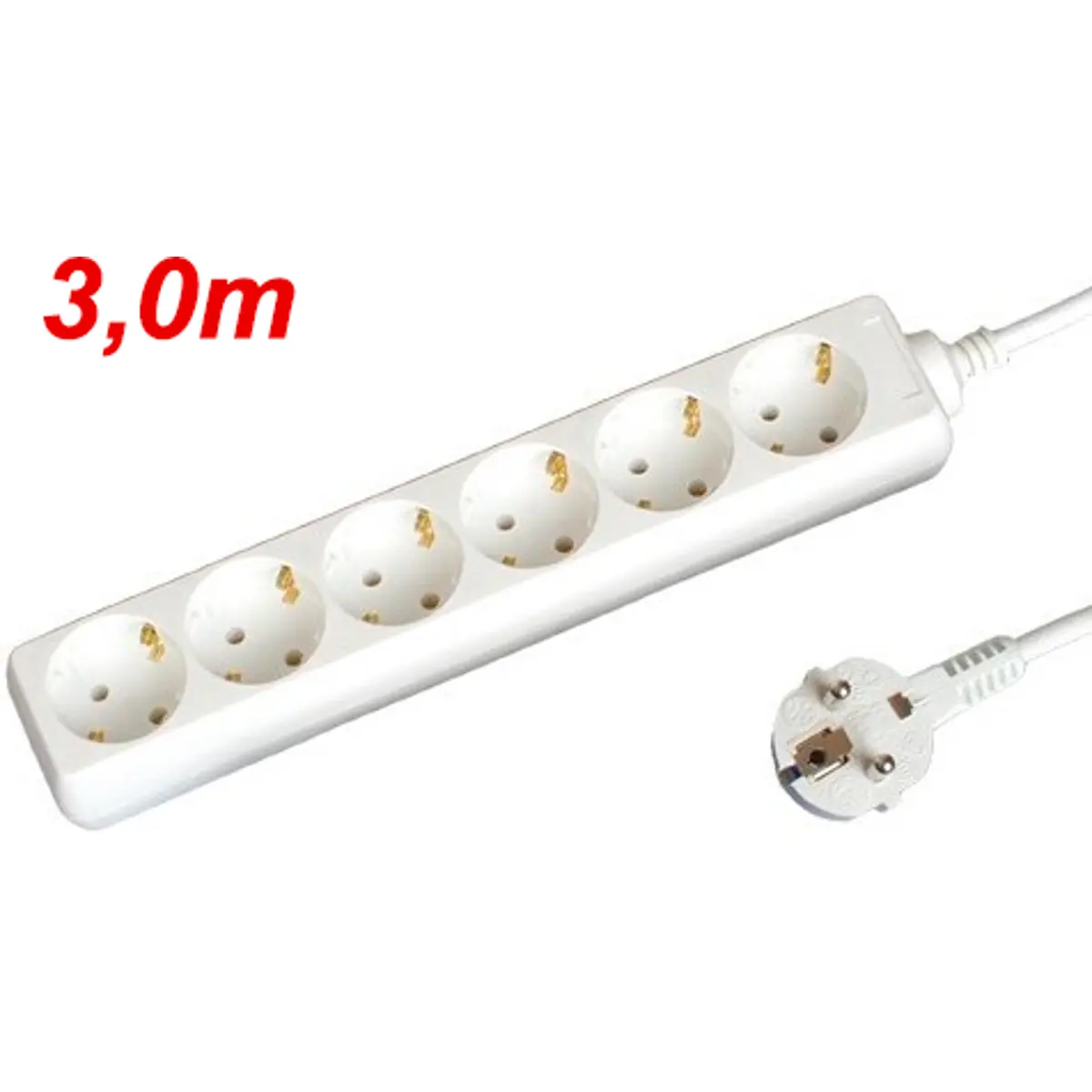 Bloco de 6 tomadas com proteção para crianças e cabo de 3m - branco.