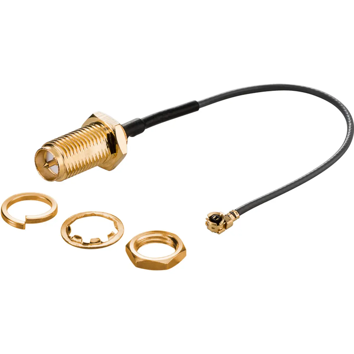 Este cabo coaxial com conectores u.FL e RP-SMA fêmea (polaridade reversa) facilita a ligação entre dispositivos WiFi/WLAN e antenas. Possui 100 mm de comprimento e diâmetro de cabo até 1,13 mm, oferecendo uma solução compacta para ligações RF em instalações internas e montagens de bancada, mantendo a compatibilidade com antenas de polaridade inversa e com hardware que utilize RP-SMA.