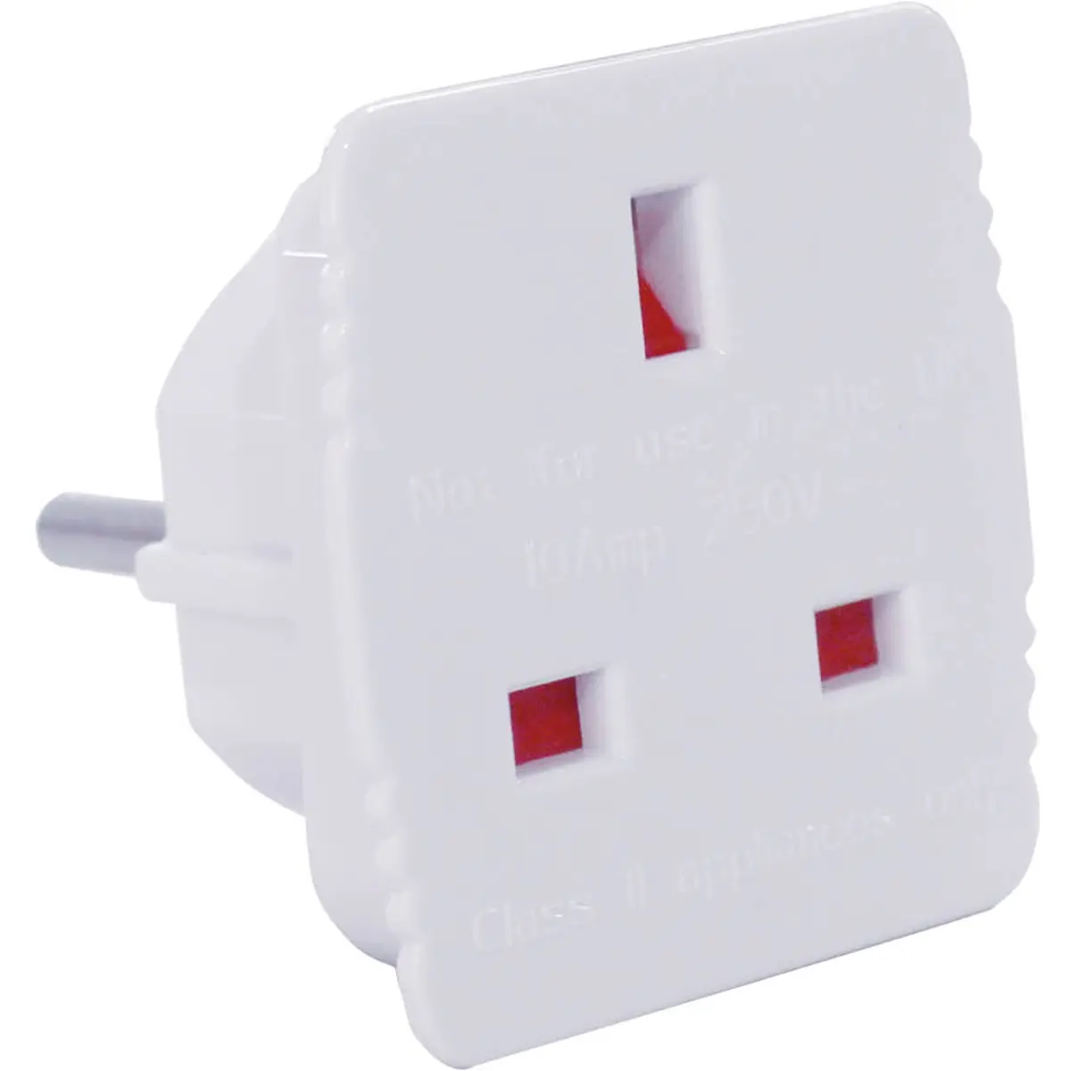 Adaptador de viagem Europeia Schuko (Tipo F) macho ➝ Inglaterra (Tipo G) fêmea - branco