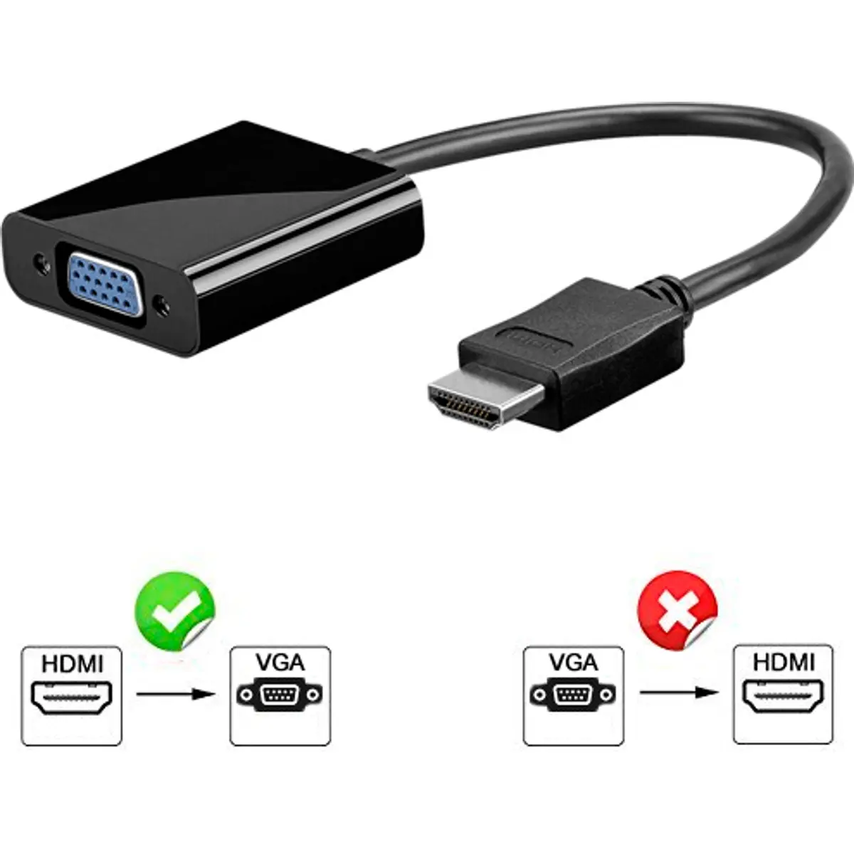 Este equipamento converte o sinal HDMI para o sinal VGA + 2 canais áudio (stereo). É uma solução ideal para ligar a um monitor VGA, por exemplo, as consolas de jogos, o cinema em casa com saída HDMI.