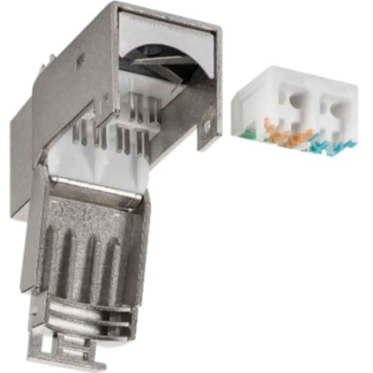 Conector RJ45 Cat6 blindado, montável em painéis Keystone até 24 portas ou tomadas de parede. Compatível com código de cores TIA 568A/B para organização de cabos e gestão de redes domésticas ou profissionais. Desempenho de rede até 250 MHz, com boa proteção contra interferências. Ideal para infraestruturas Ethernet de alta performance, oferecendo instalação modular e organizada em quadros de rede com tomadas de parede e módulos Keystone.