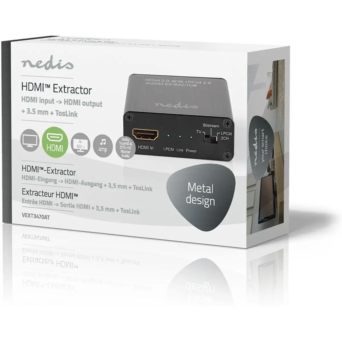 Ligue este extractor HDMI a um leitor de DVD / Blu-ray e ao seu televisor e a um sistema de áudio. O extrator permite uma excelente qualidade de imagem e permite que você aproveite a experiência de áudio mais avançada.