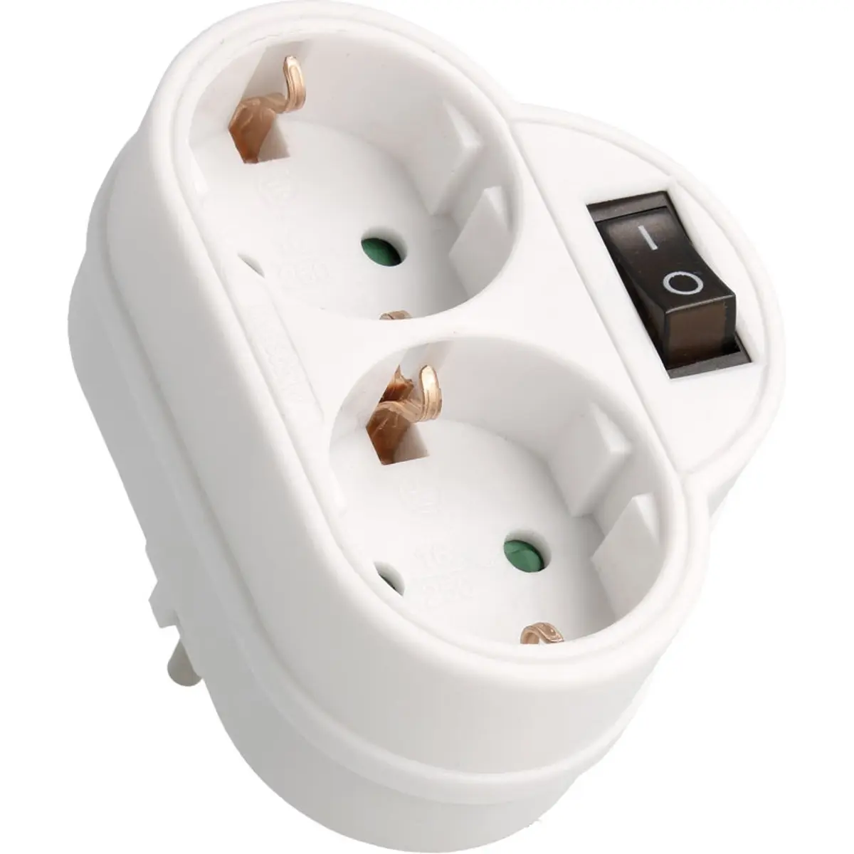 Ficha dupla Schuko de 250V com interruptor, desenhada para utilização doméstica. Suporta até 3500W e até 16A de corrente, oferecendo duas tomadas Schuko fêmea para ligar dispositivos simultaneamente. Ideal para gerir equipamentos elétricos numa área de trabalho ou sala de estar, permitindo desligar rapidamente através do interruptor. Compacta e prática, facilita a gestão de consumos e reduz a necessidade de múltiplas tomadas.
