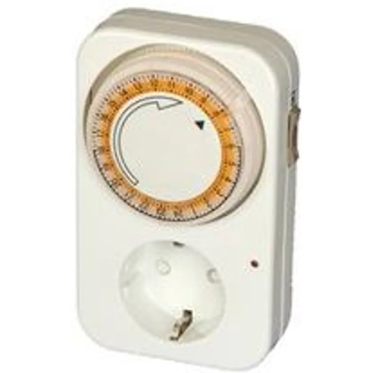 Esta tomada horária analógica permite controlar a alimentação de dispositivos ao longo de 24 horas com intervalos de 15 minutos, ideal para programação diária e poupança de energia. Suporta até 230V e 16A, com potência máxima de 3500W. Possui interruptor, LED de estado ON/OFF e dimensões compactas de 70 x 120 mm, tornando-a adequada para casa, oficina ou local de trabalho.
