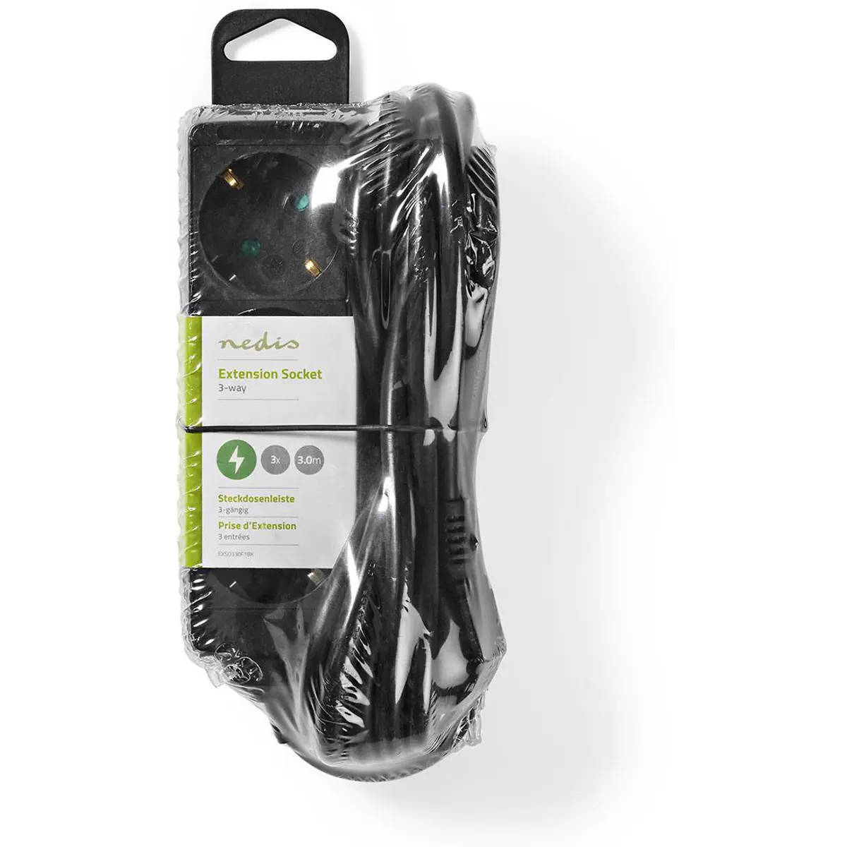 Nedis - Bloco de 3 tomadas - Preto - cabo (3x1.5mm²) 3.0m