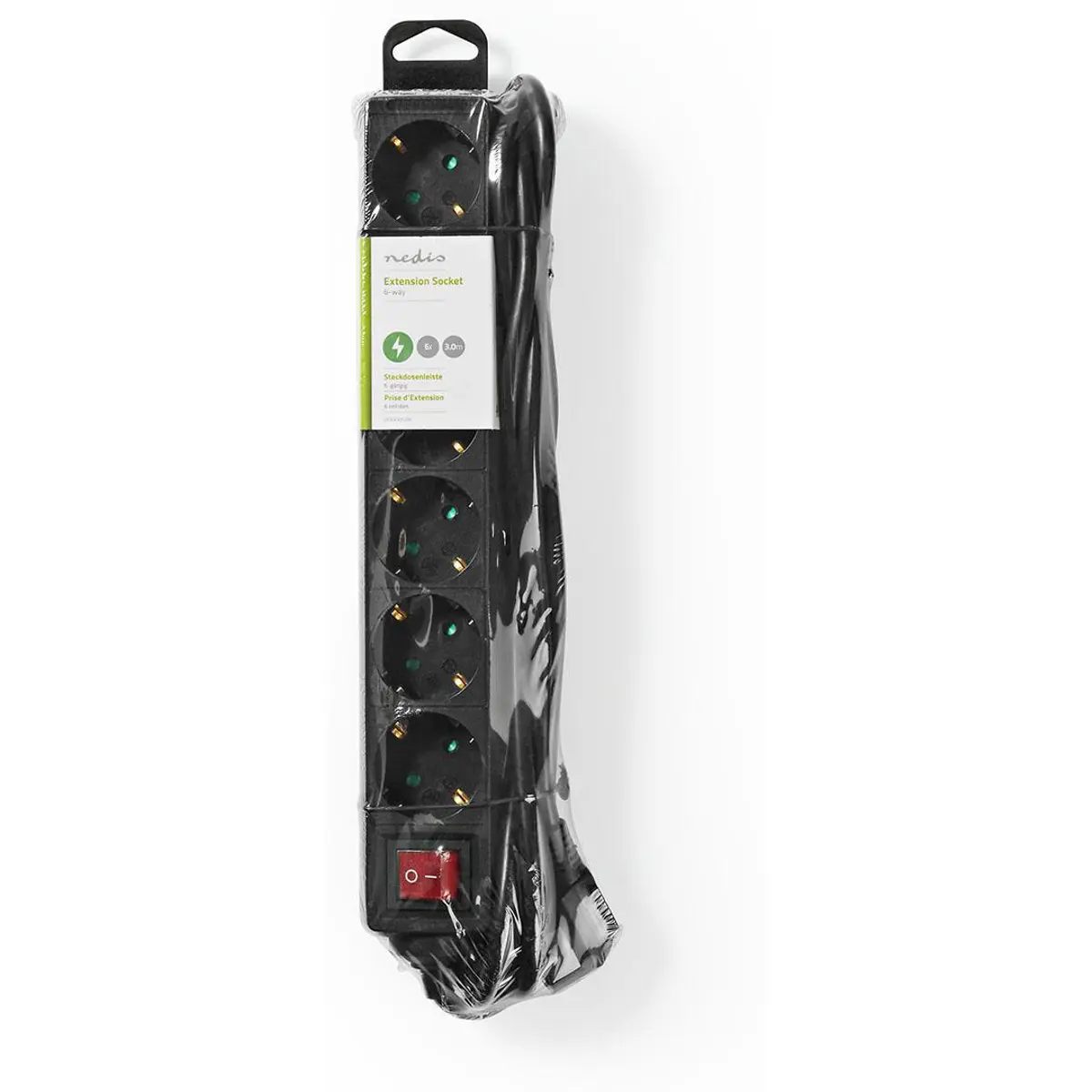 Nedis - Bloco de 6 tomadas c/ interruptor - Preto - cabo (3x1.5mm²) 3.0m