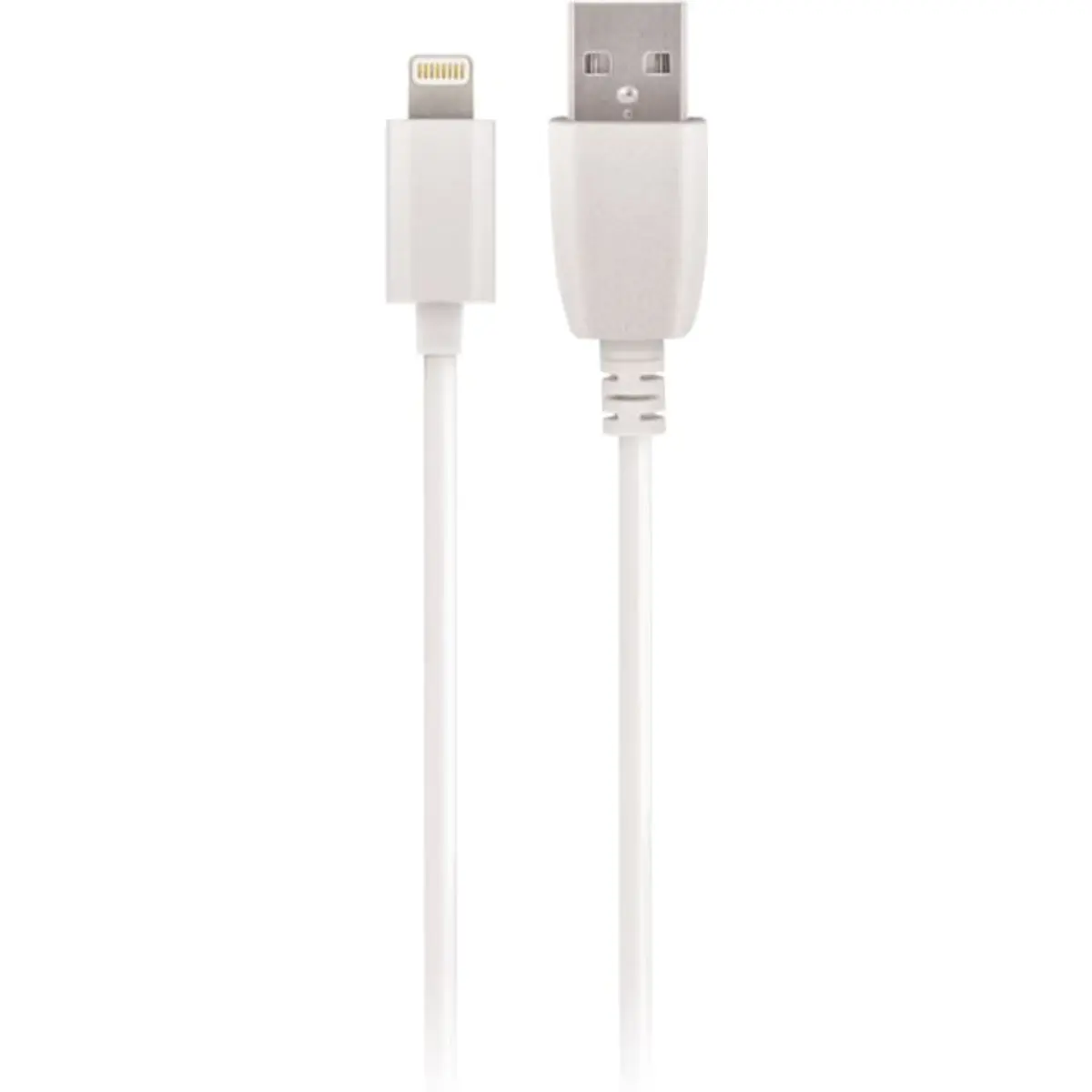Cabo de dados USB tipo A para Lightning, com 1 metro de comprimento e cor branca, compatível com iPhone 5, iPad 4, iPad mini, iPod Touch (5.ª geração) e iPod Nano (7.ª geração). Ideal para sincronização e carregamento de dispositivos com conector Lightning, garantindo ligação estável e compatibilidade com iOS.