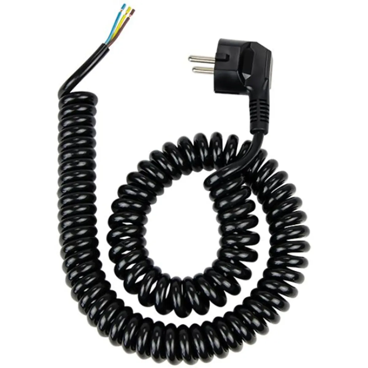 Cabo de alimentação (PVC) em espiral c/ ficha Schuko 90º - 3x1.0mm² - Preto - 5.0m